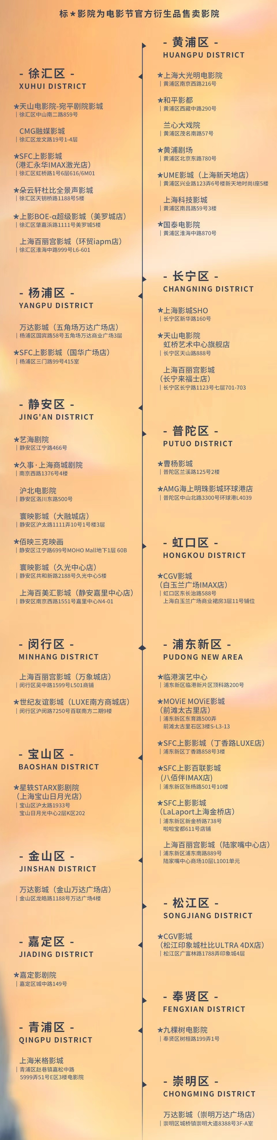 第27届上海国际电影节展映影院名单。主办方供图