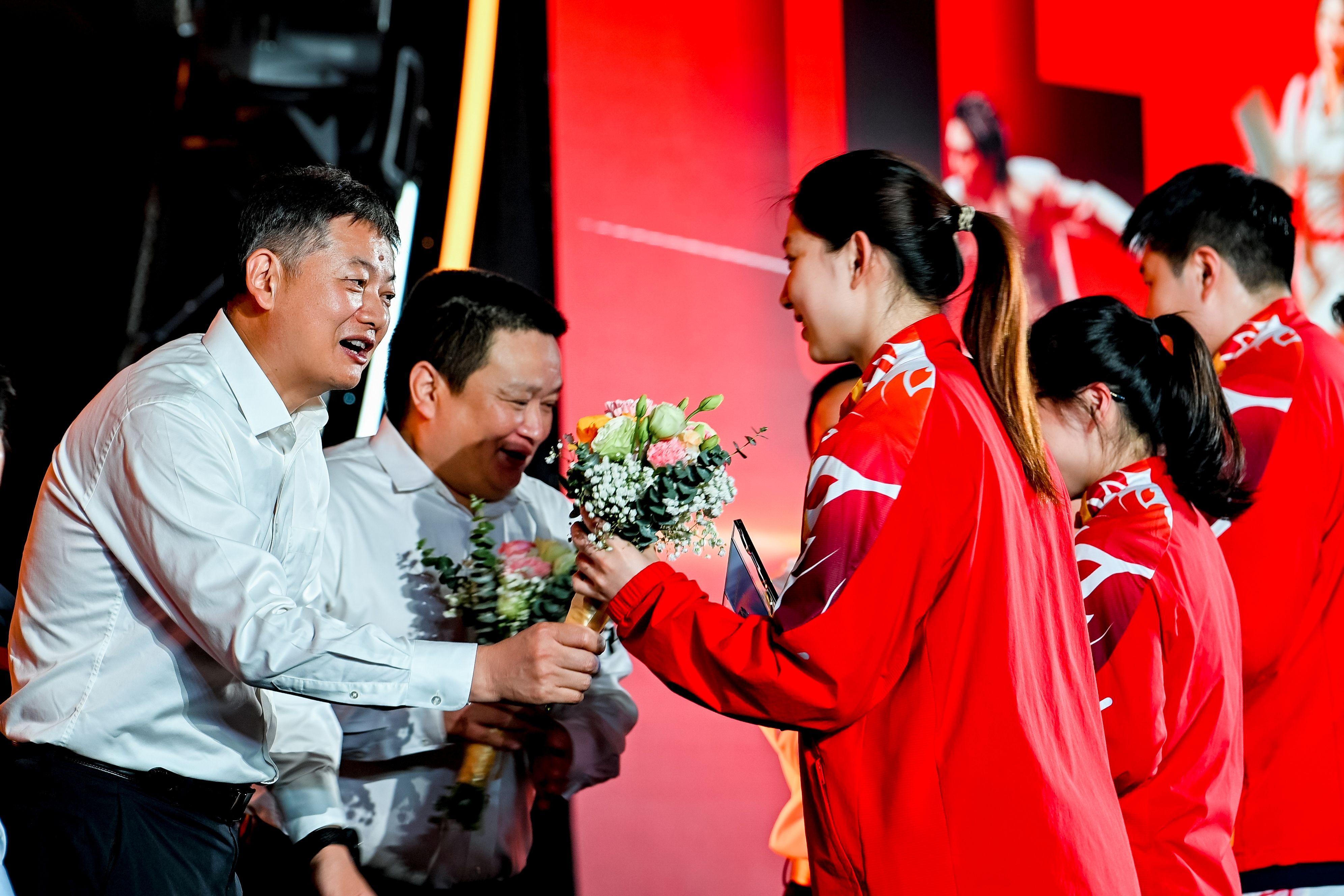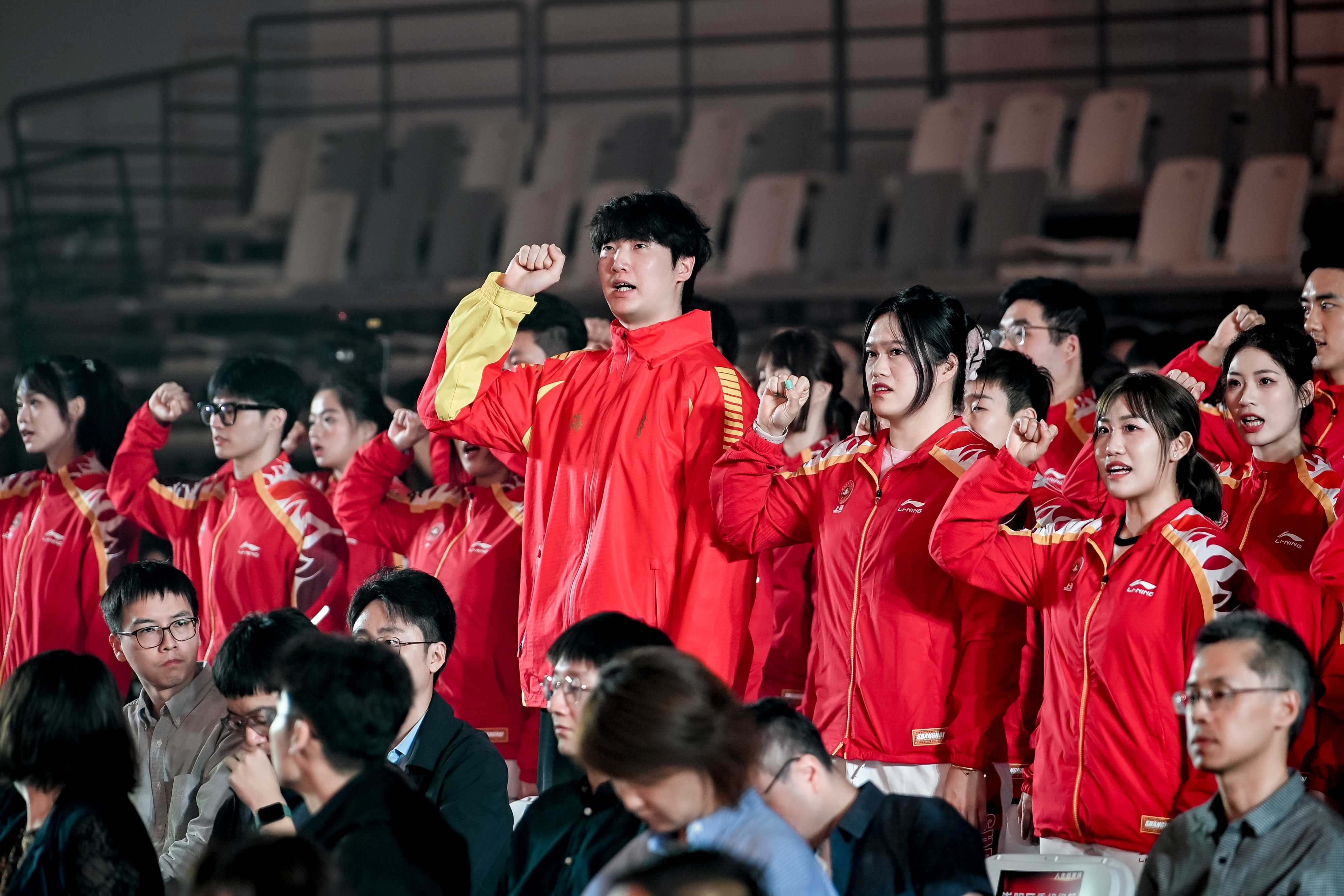“体育赠我一道伤,又教我重燃斗志昂;体育赠我一场败,又让我逆风更倔强。有人振臂呼,有人泪满眶,凭一分坚持,驰骋在赛场!拼一拼,闯一闯,向前冲!好未来眷顾勇者,人生新赛场!”三幕主题鲜明的舞台表演,无缝衔接2025年退役主打歌《体育赠予我的》,将现场氛围推向高潮,同时也激励着在场的运动员怀揣更坚定的信念奔赴人生新赛场。