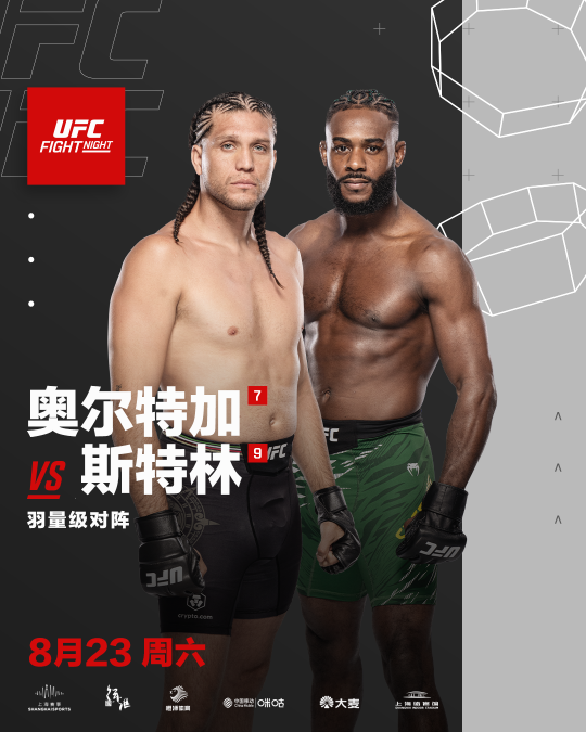 8月23日,UFC格斗之夜上海站将在上海体育馆举行。主办方在6月26日宣布,轻重量级排名第12位的巴西选手强尼·沃克对阵排名第14位的中国选手张名扬,担任头条主赛。联合主赛中,羽量级排名第7的布莱恩·奥尔特加将对阵排名第9的阿尔加麦恩·斯特林。