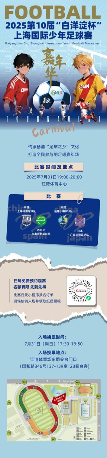 本次赛事决赛将放在近百年历史的江湾体育场,市民可扫码领取观赛门票。主办方图