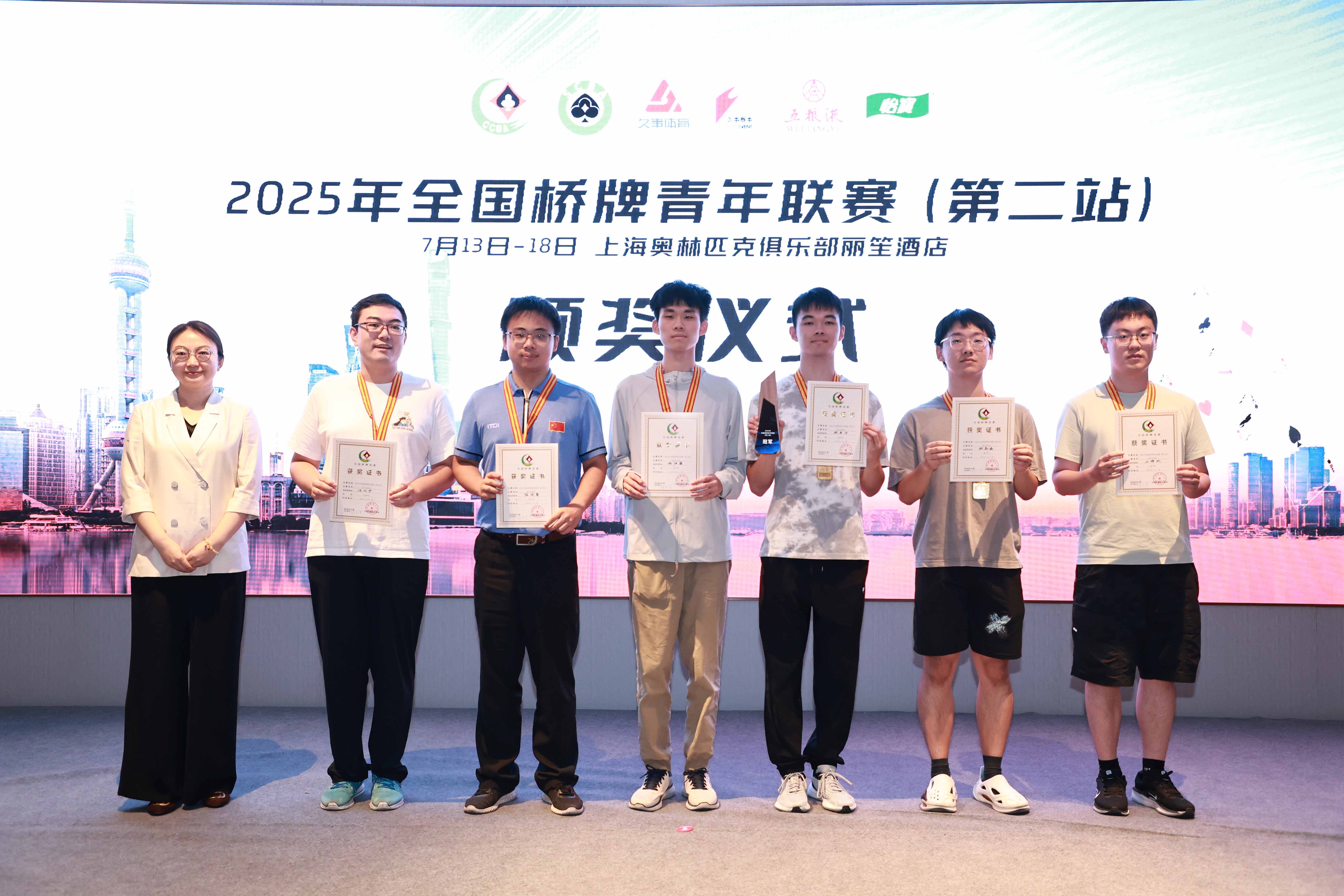 与此同时,首次创办的全国桥牌青年联赛(第二站)亦顺利收官,上海青年队、青岛赛轮预备1队、上海辰宜队夺得本站冠亚季军,上海地平线队、青岛赛轮预备队2队、华彬智运青年队(北京业之峰青年红队)勇夺本年度冠亚季军。
