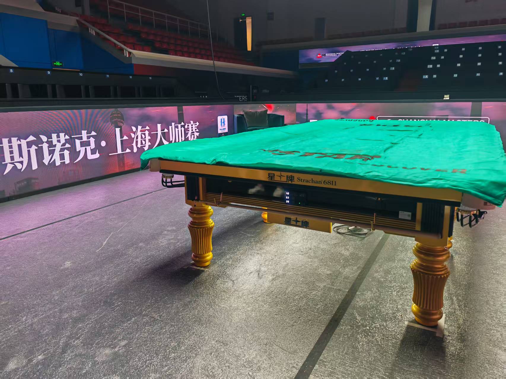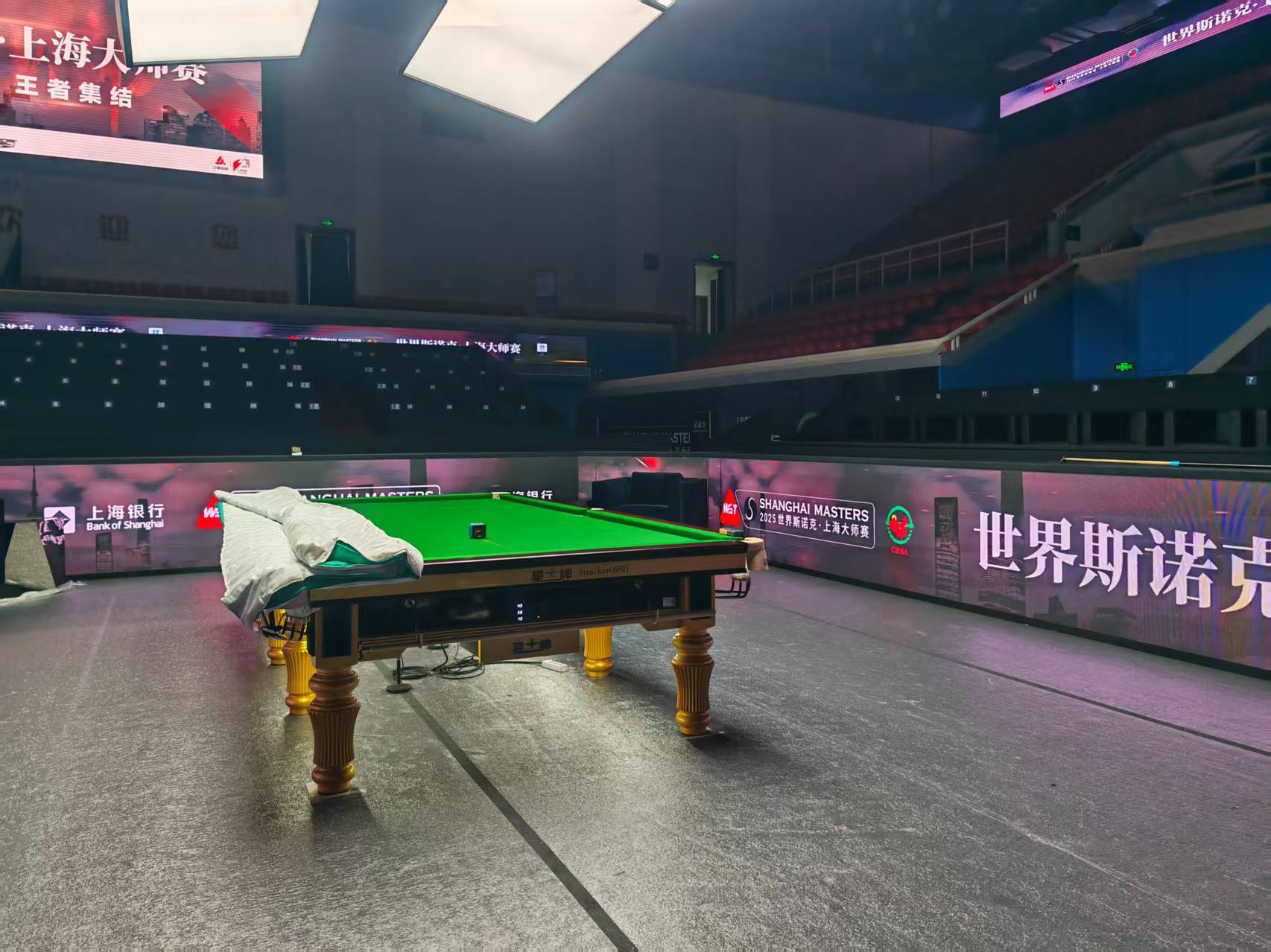 斯诺克上海大师赛现场首次使用LED挡板。劳动报记者王卫朋 摄影