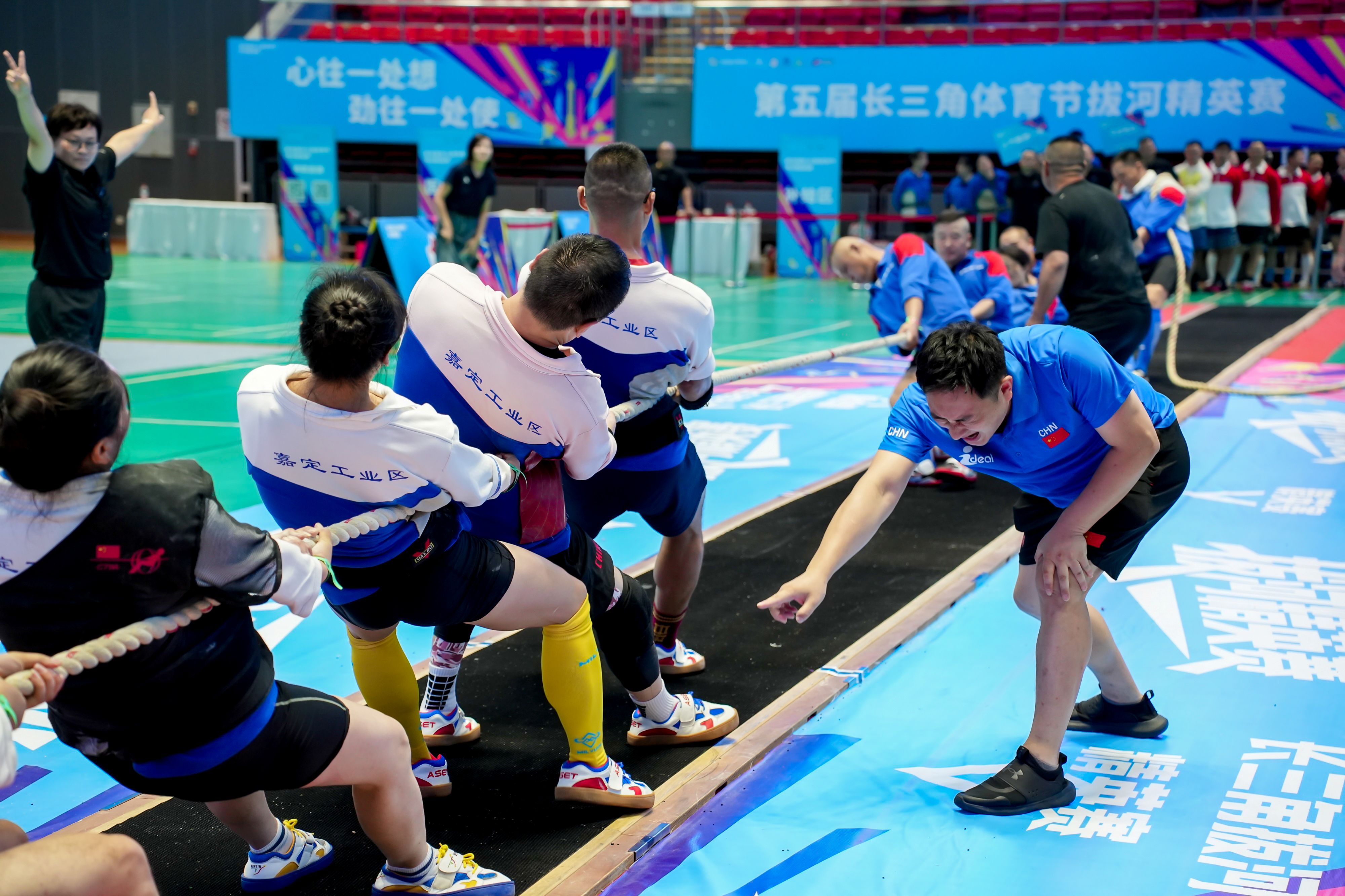 8月23日,第五届长三角体育节拔河精英赛在上海市嘉定体育馆火热开赛。作为上海竞技拔河起源地的嘉定,再次以高水平的赛事组织,展现了这项传统运动的新魅力。