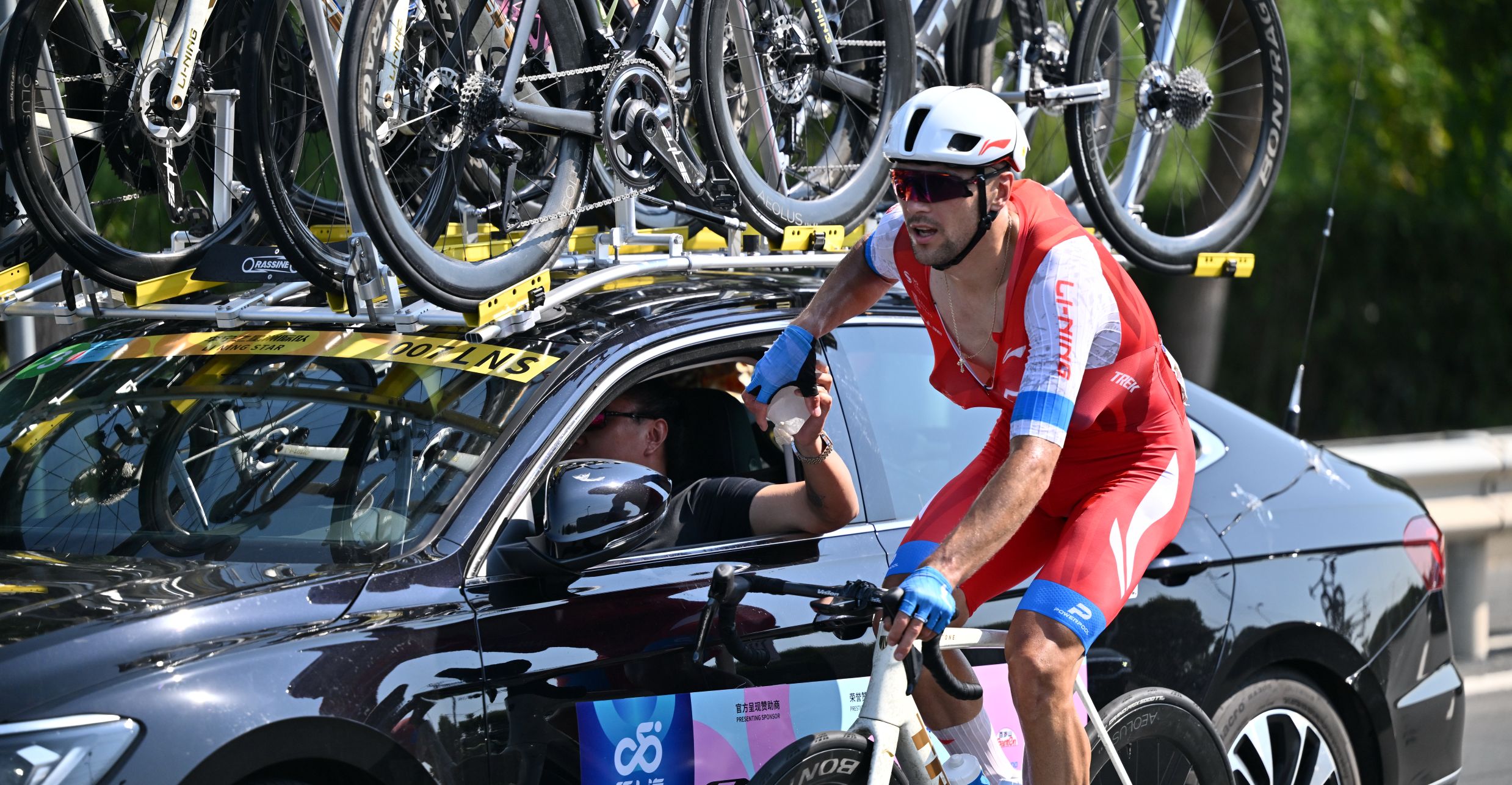 9月6日,2025环上海·新城自行车赛展开第二赛段争夺,10个国家的20支顶尖职业车队共114名车手从上海欢乐谷出发,完成了94.8公里的骑行,抵达位于青浦青西郊野公园的赛段终点。