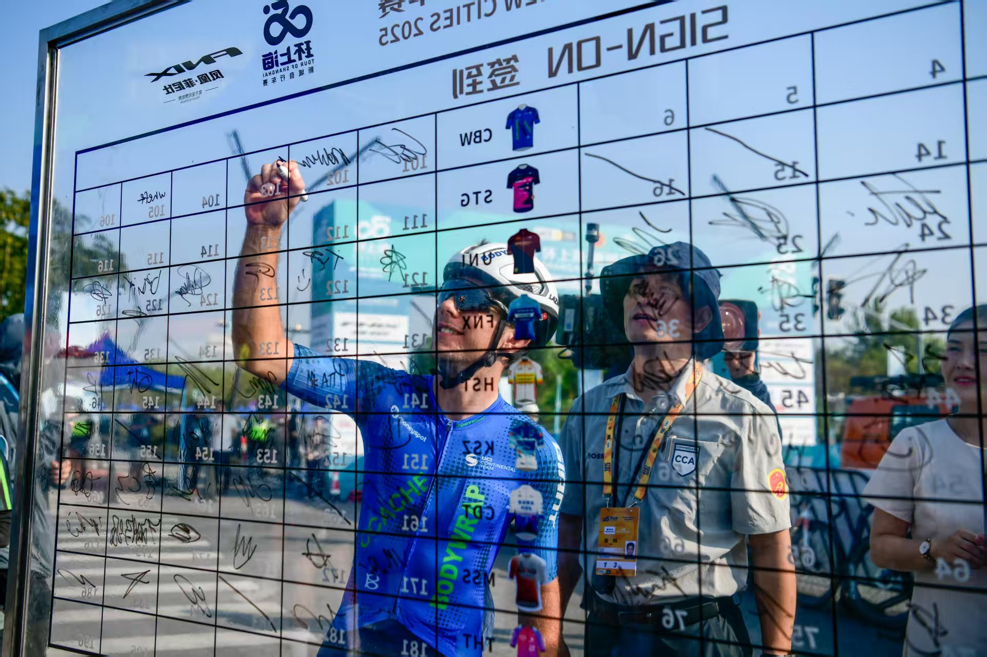 今年的赛事特别为选手设立了签名墙。劳动报记者颜筱依 摄影