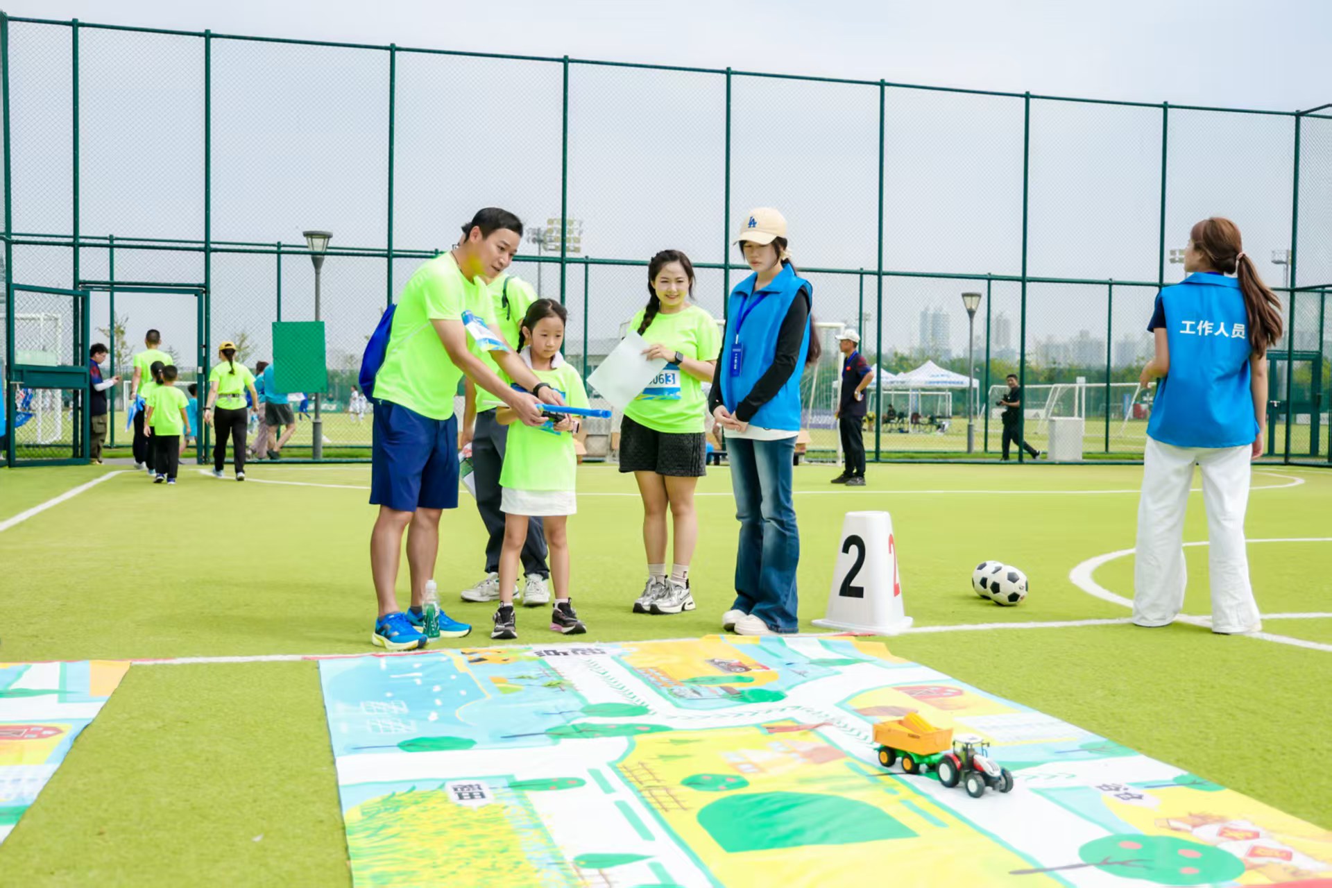 全长4公里的赛道串联上海市民体育公园及F1赛车场部分区域内的五大特色点位,构建起“体育+农业+科技”的沉浸式体验场景。“勇于攀登”障碍挑战锻炼参赛选手勇气与协作能力;“‘谷’动人心”合力击鼓颠球考验团队默契;“绿动外冈”体感游戏展现“体育+科技”的趣味互动;“智慧农场”遥控运粮现场模拟农事操作;“粉‘磨’登场”研磨外冈大米传承农耕文化。每个任务都像一把“钥匙”,开启一段亲子同乐、感受新农业图景的探索之旅。