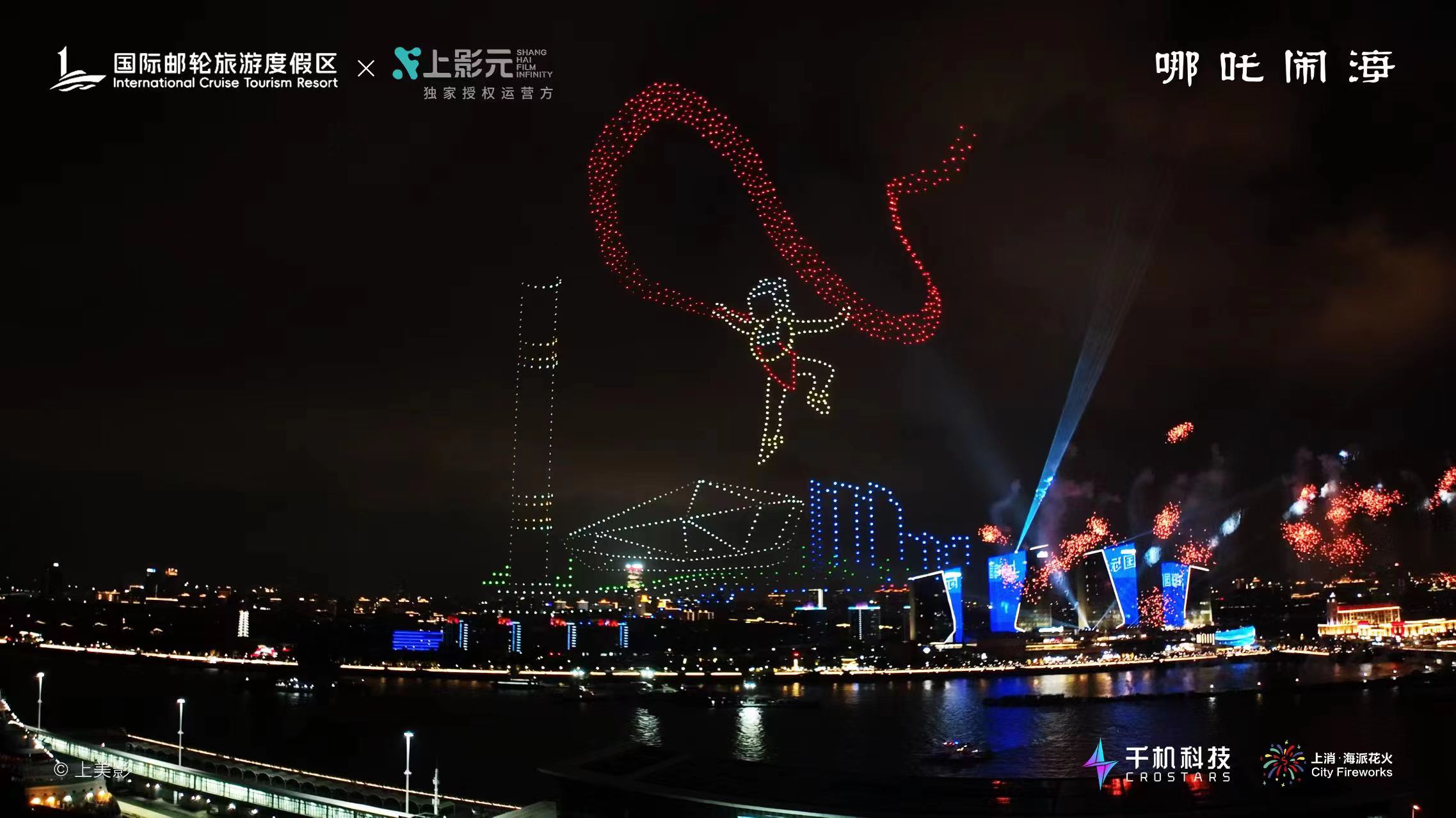 9月30日至10月1日,上海吴淞口国际邮轮港畔的夜空被中国动画与科技之光点亮。伴随着恢弘的交响乐章,千架无人机缓缓升起,汇聚成“哪吒”英姿飒爽的形象,登上“吴淞口空中剧场”。夜空成为无边际的动态画布,无人机群以精准的队形变换,生动再现了哪吒降世、手持乾坤圈、勇斗四海龙王等经典场景,为申城市民游客呈现了一场超越想象的沉浸式文旅盛宴。