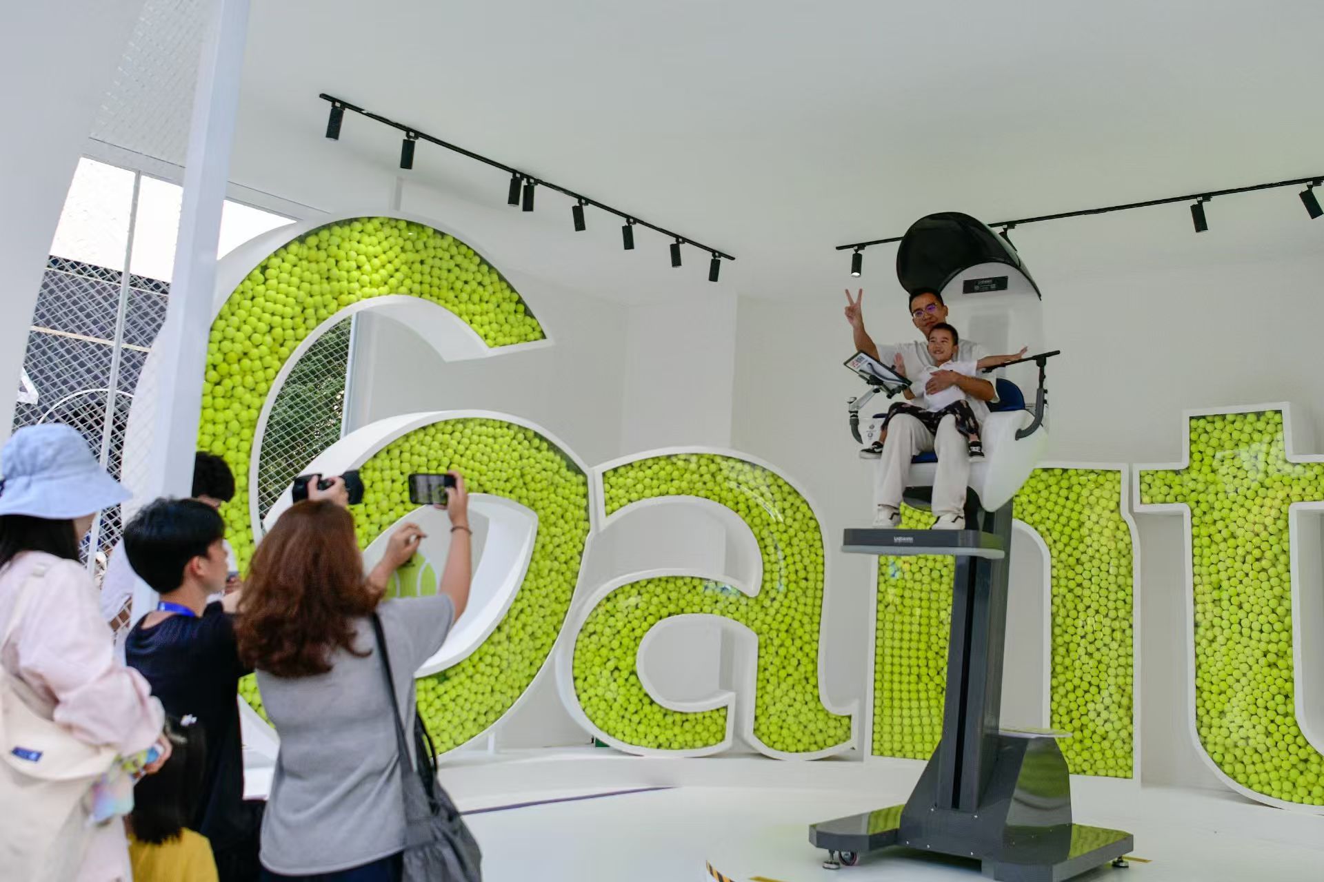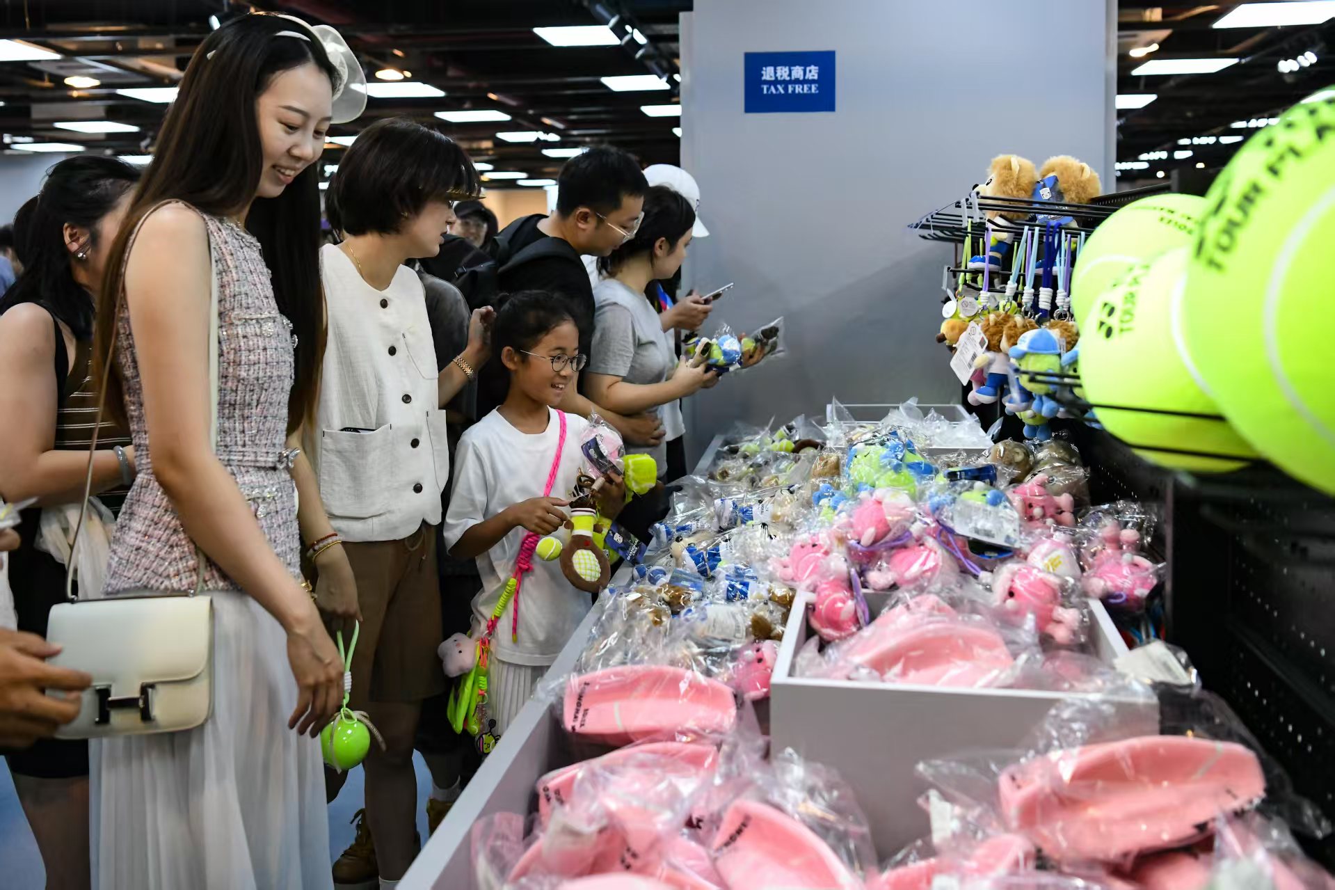 场内精彩不断地同时,场外活动也是丰富多彩。今年的赛事有8天覆盖国庆和中秋小长假,互动体验区将网球元素与趣味游戏巧妙融合;训练场可以近距离观看球员挥拍,也是索要签名的好机会,同样坐满了观众;纪念品商店人流如织,爆款产品——爆炸头玩偶和卷毛玩偶早早销售一空。