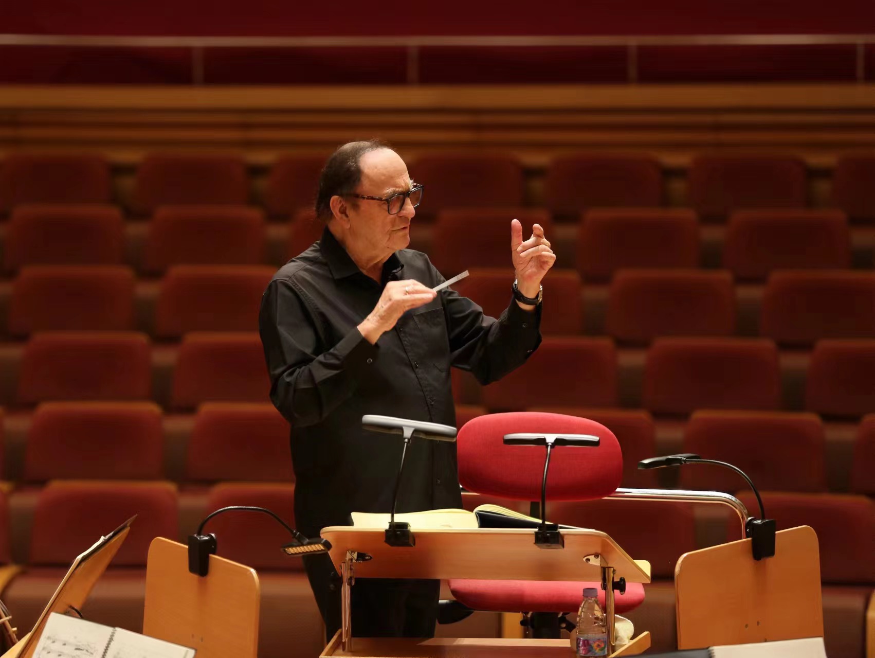 头图为指挥大师迪图瓦在排练现场。上交供图