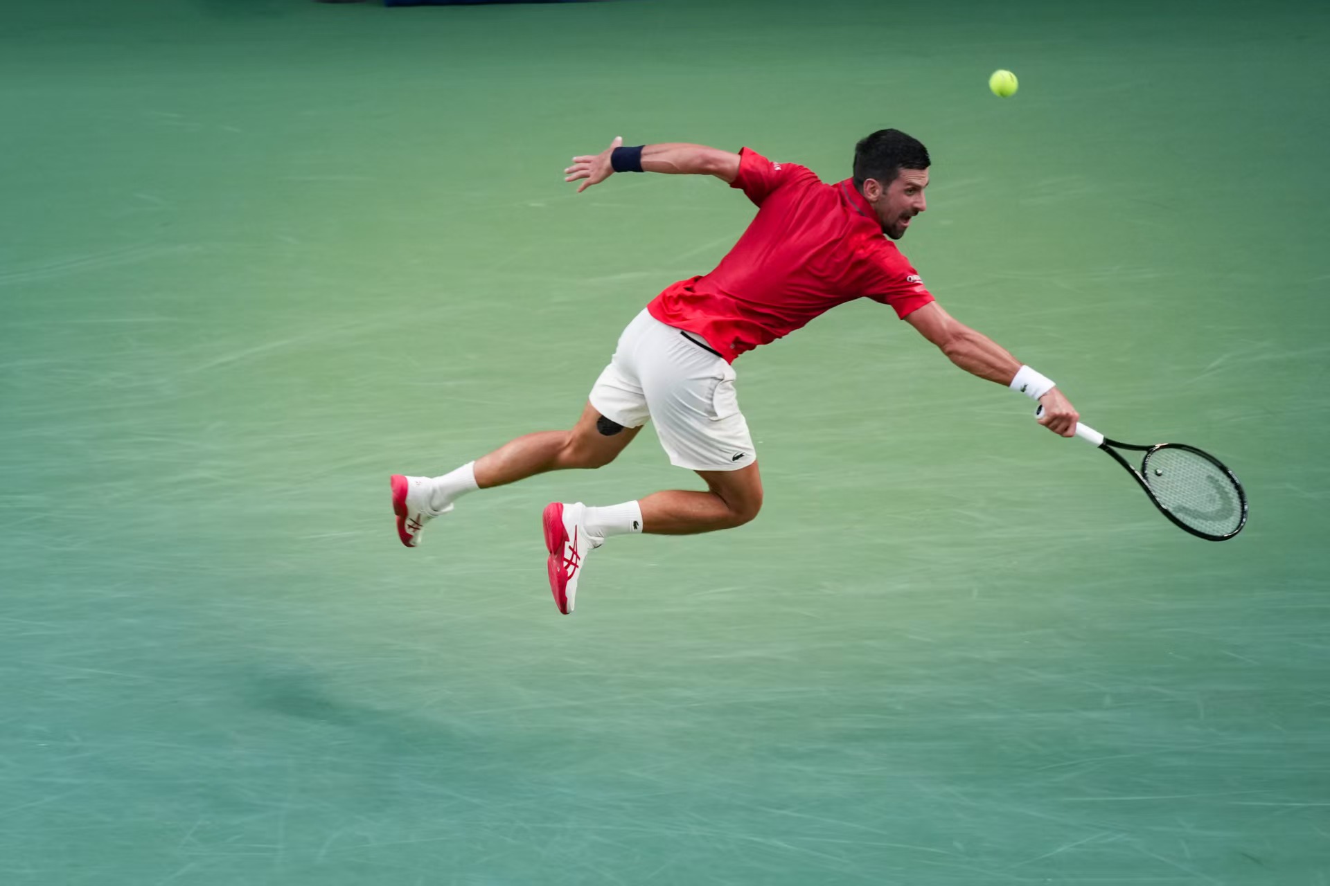 德约科维奇在比赛中救球。劳动报记者颜筱依 摄影