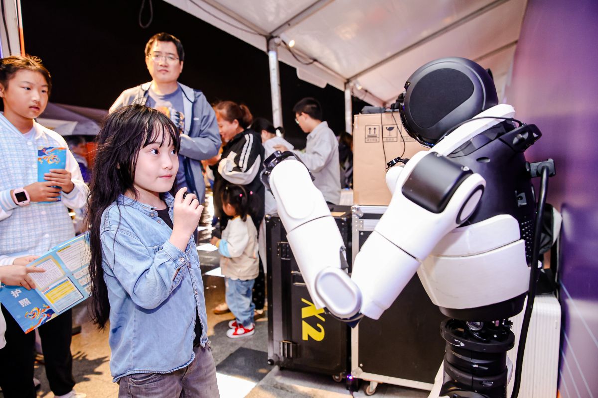 小朋友与机器人互动。主办方图