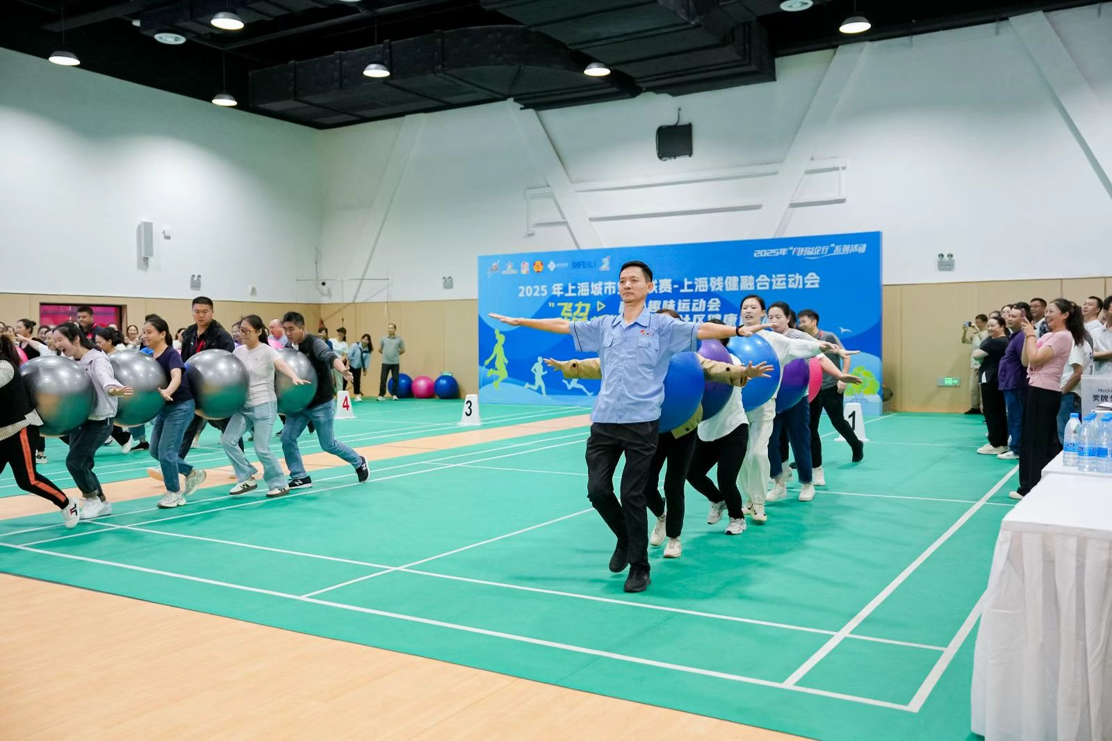 2025年上海城市业余联赛上海残健融合运动会,日前在外冈镇社区市民健身中心篮球馆举办。“飞力勋铖杯”融合趣味运动会暨外冈镇社区健康运动会同期举行,吸引了涵盖“阳光员工”在内的170余名企业职工热情参与,共同开启一场温暖与激情并举的体育盛会。