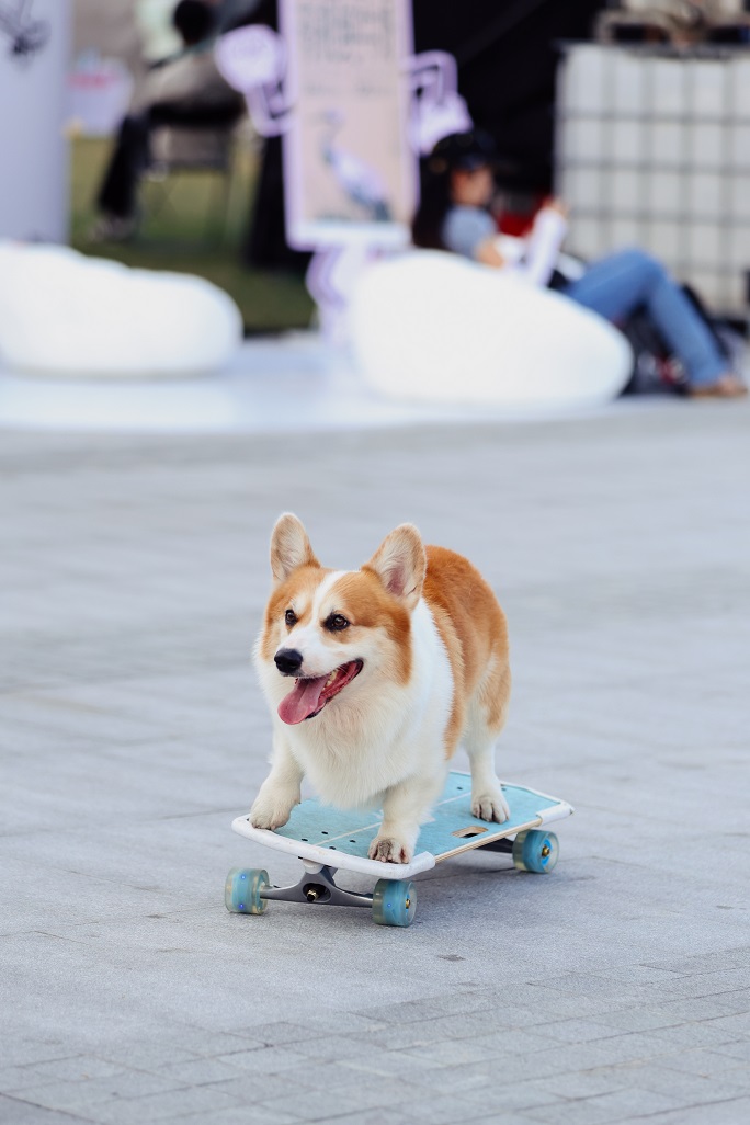 宠物也来江边玩滑板。主办方图