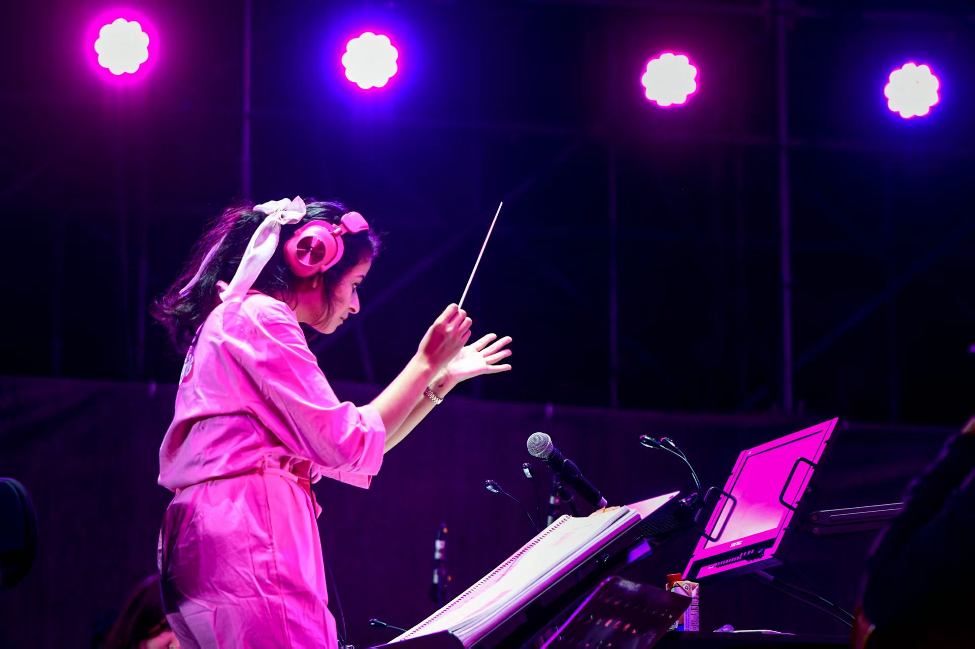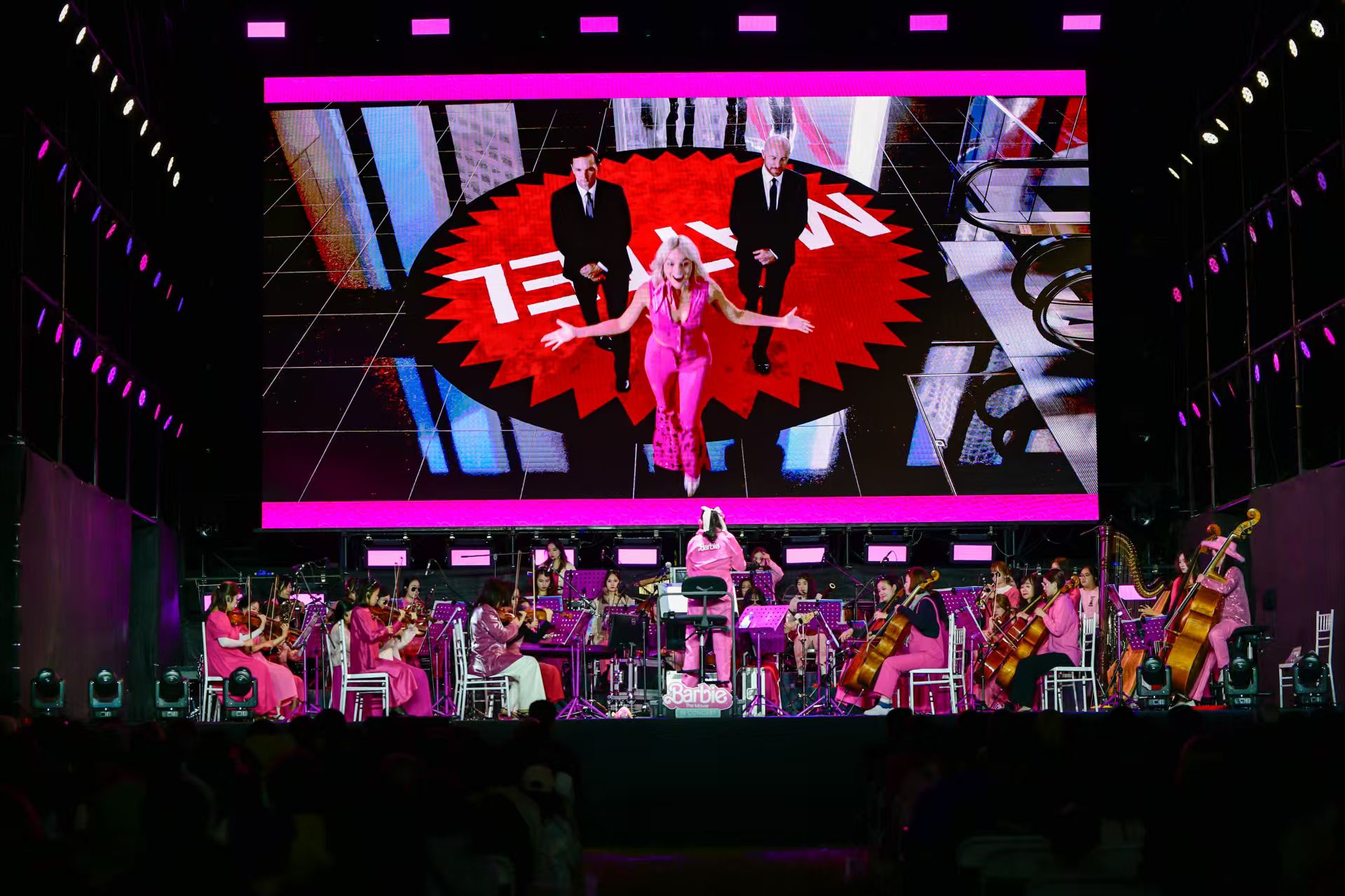 本届音乐节两日演出均围绕都市时尚气质展开。首日由百老汇女子乐团创始人Macy Schmidt执棒“粉色女子交响乐团”现场演奏《芭比》电影音乐,观众在聆听交响声部的同时,可同步于大屏观看影片片段,使户外环境转化为开放式沉浸影院。第二日则由克罗地亚旅游形象大使、大提琴家安娜·鲁兹内尔与打击乐手马克·杜夫尼亚克带来跨界演出,以大提琴与架子鼓组合形成古典与流行、东方与西方、柔情与力量的对照,现场观众在开放草地与自然绿景中完成声场体验。