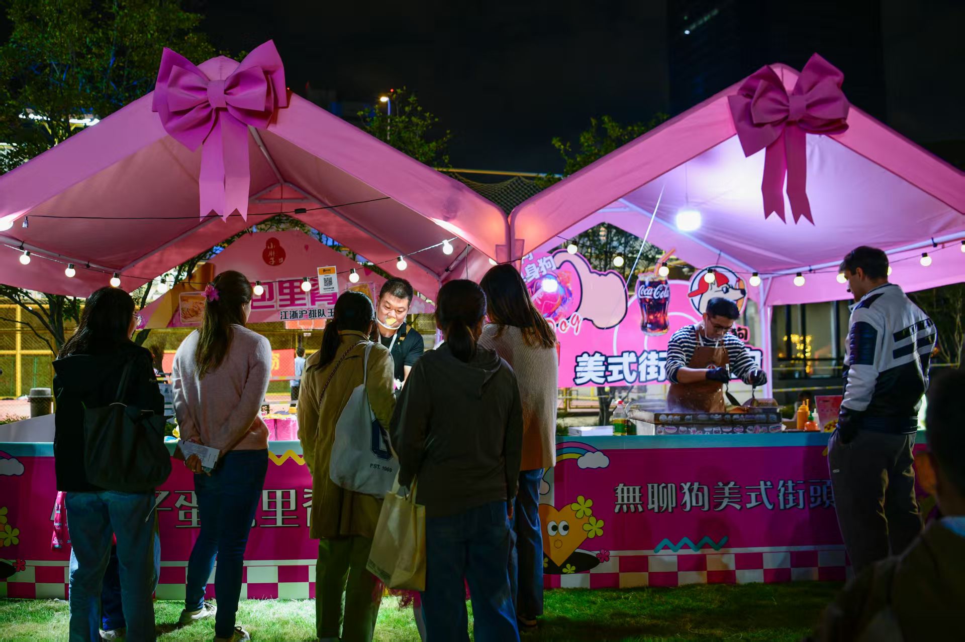 音乐节不仅形成文化活动场景,同时作为“文旅商体展绿融合”的联动抓手,市集汇聚40余家特色商户,分为文创潮品、美食体验与生活美学三类——文创潮品区以粉色为主色推出限定周边,并汇集创意手作与独立设计品牌;美食体验区囊括本土风味、网红小吃与创意甜品;生活美学区设置花艺、香薰与手作体验,使观众可在音乐现场延展生活美学消费。