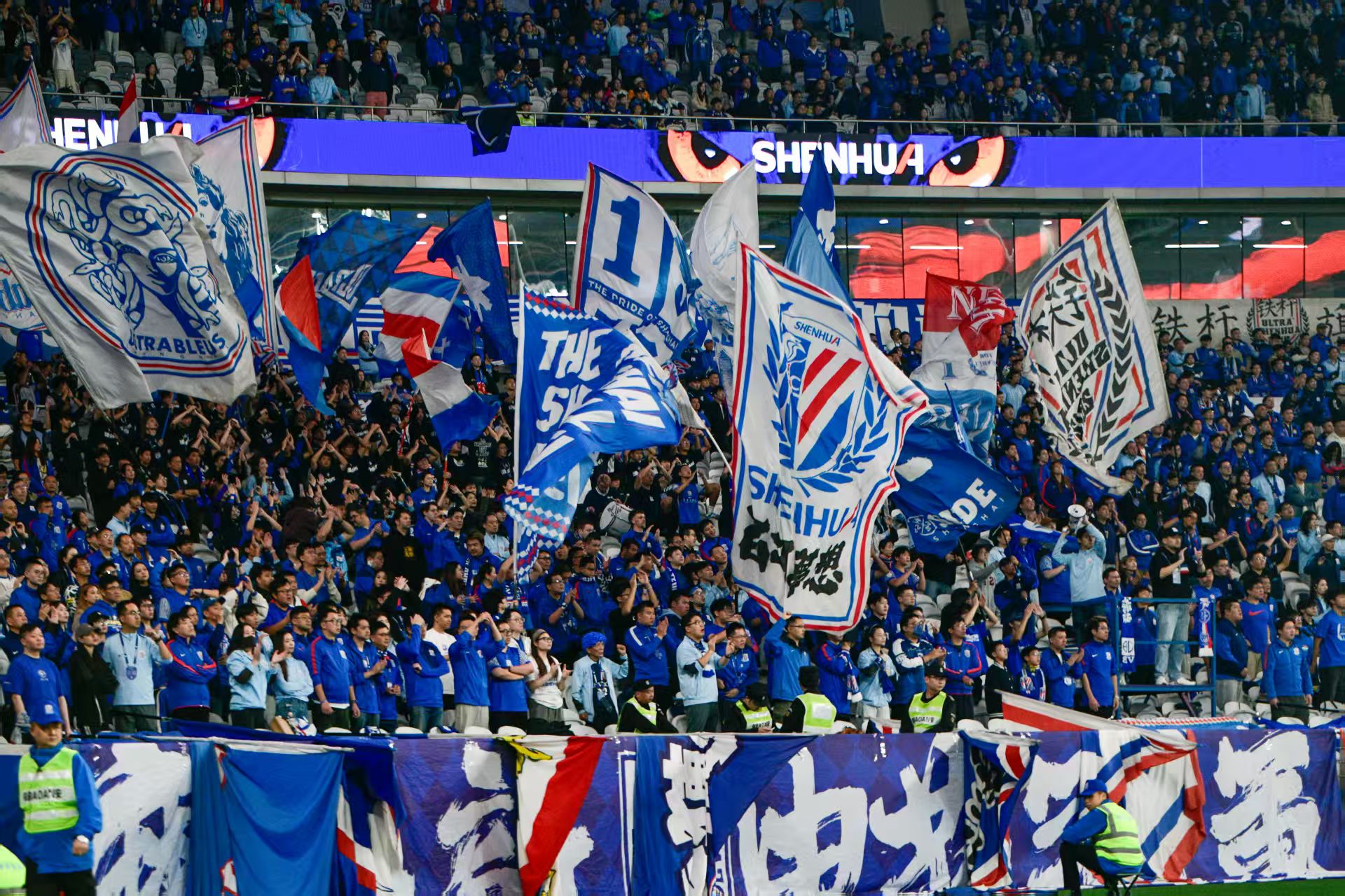 中超争冠冲刺阶段,不少申花球迷在主场为球队加油助威。劳动报记者颜筱依 摄影