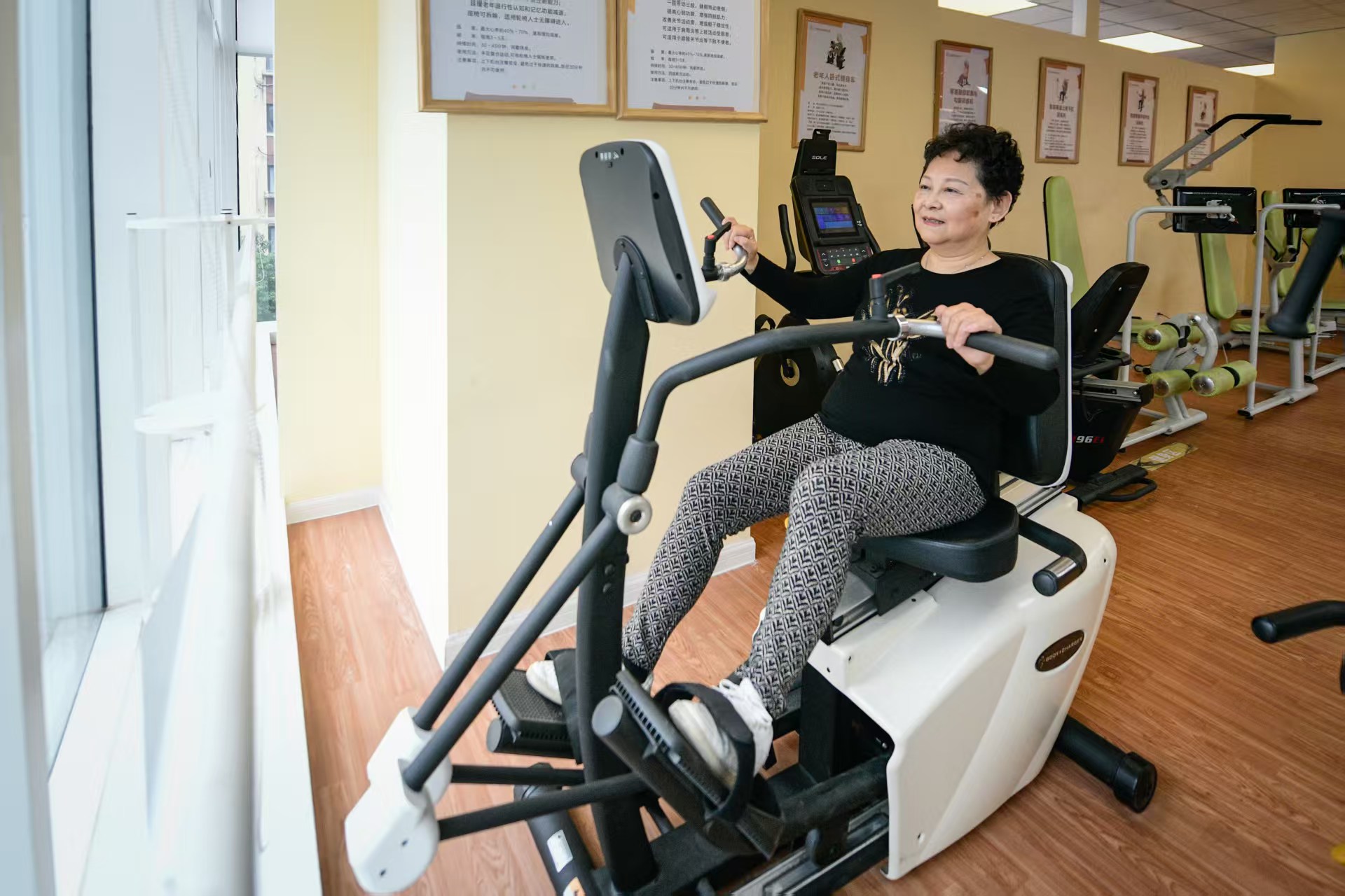 记者在现场看到,这种“老年专属健身房”的器材配置始终围绕“安全、实用、易操作”原则,没有复杂的重型器械,取而代之的是带心率监测的跑步机、可调节强度的律动机、低冲击的关节训练器等,部分器材还配有扶手和防滑设计。