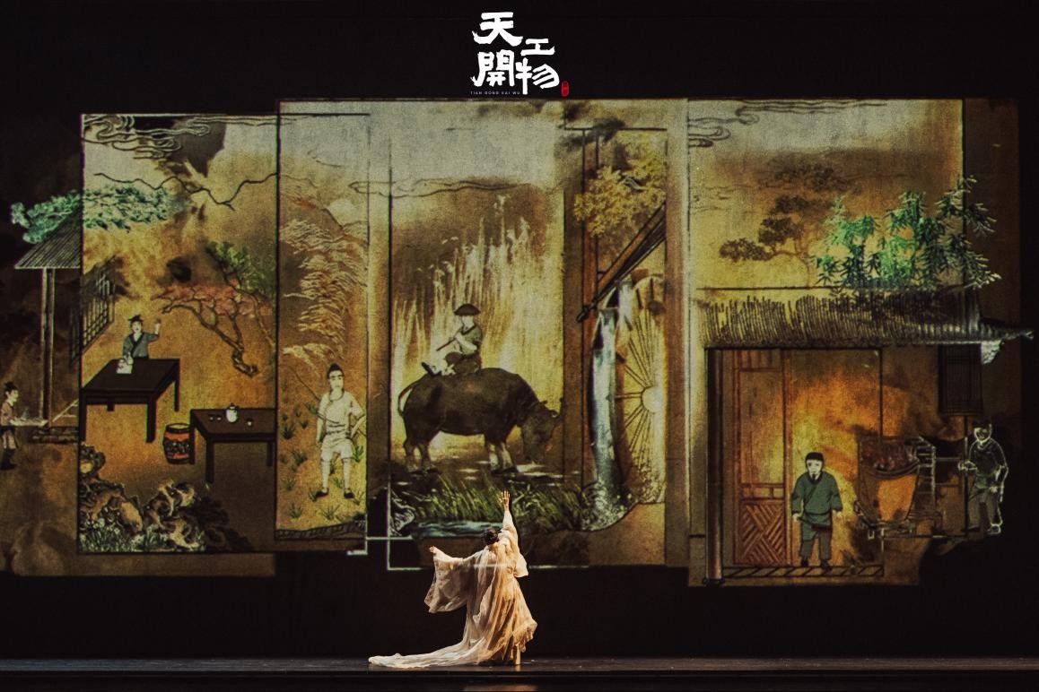 这部以《天工开物》为题材的舞剧,便以“赶考”“著书”“山河”等篇章为线索,通过舞蹈、影像和现代科技的结合,重现了中国古代劳动人民的智慧与创造,也让这本记录中国古代科技与工艺的百科全书“活”了起来。观众可以穿越回300多年前,亲眼目睹宋应星如何在乱世中隐遁著书,以书为帆,将中国智慧传播四海。