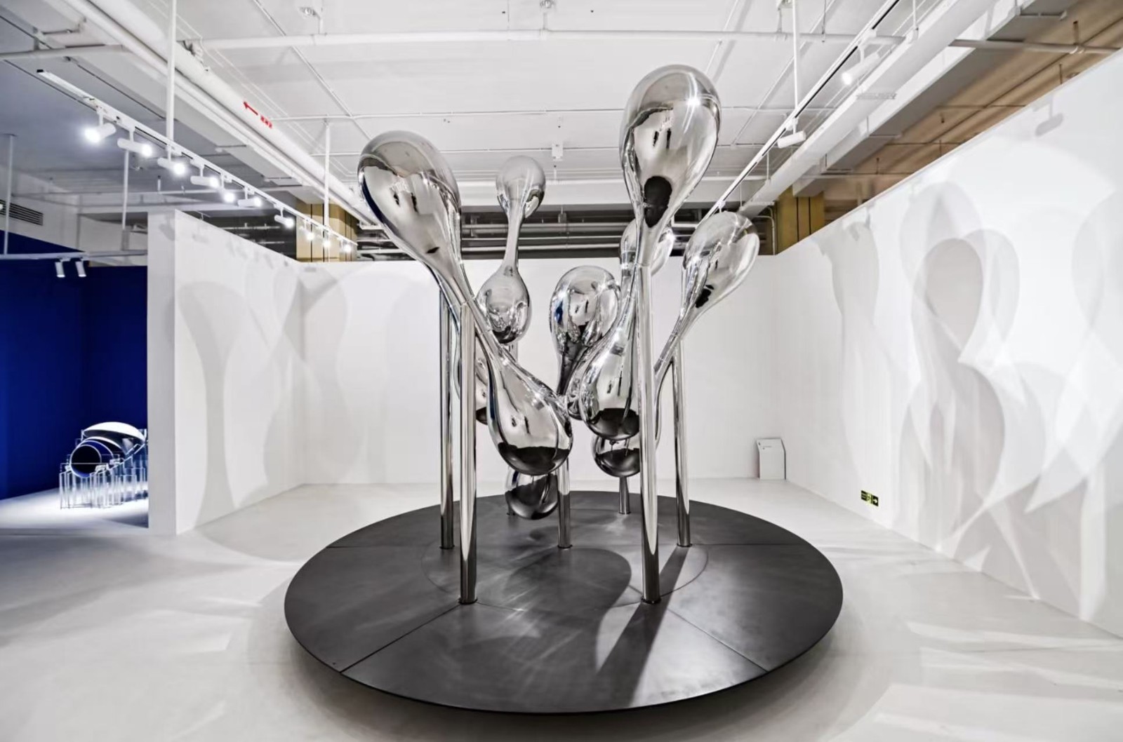 2024年新作《323根刺》以铝制基底承载323根黄铜尖刺,精密螺丝固定的可拆解结构,暗喻“文明秩序的脆弱性”;高4.7米的《线性花园》用交错金属条搭建“金属峡谷”,灯光透过缝隙投射的流动光影,让“花园”从实体景观转化为感官体验;《二百六十四滴泪》则将情感符号“眼泪”转化为工业模块,半透明玻璃涂层折射的微光,打破“金属无情感”的刻板印象。