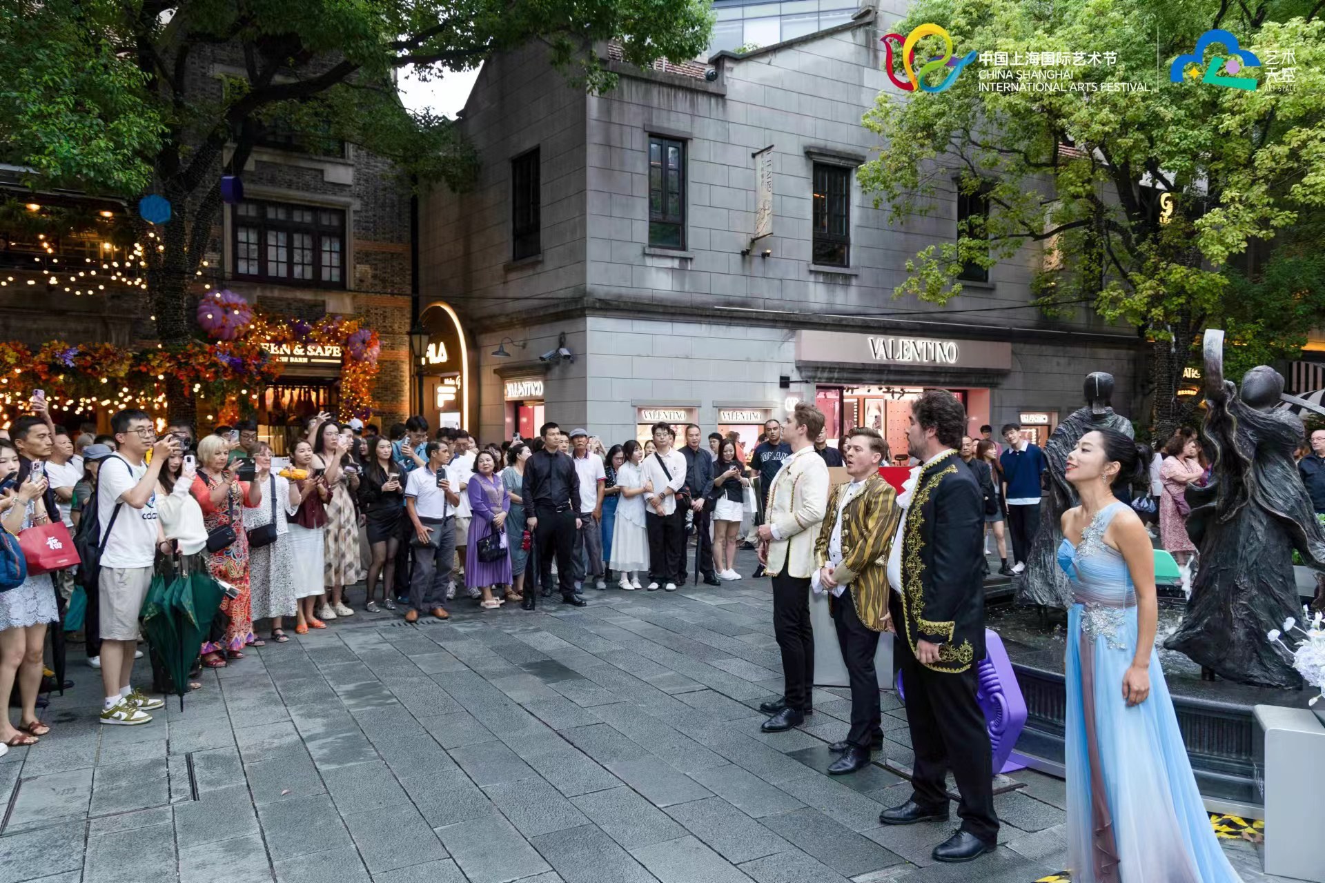 艺术家们在新天地商圈演出,吸引中外游客驻足。主办方供图