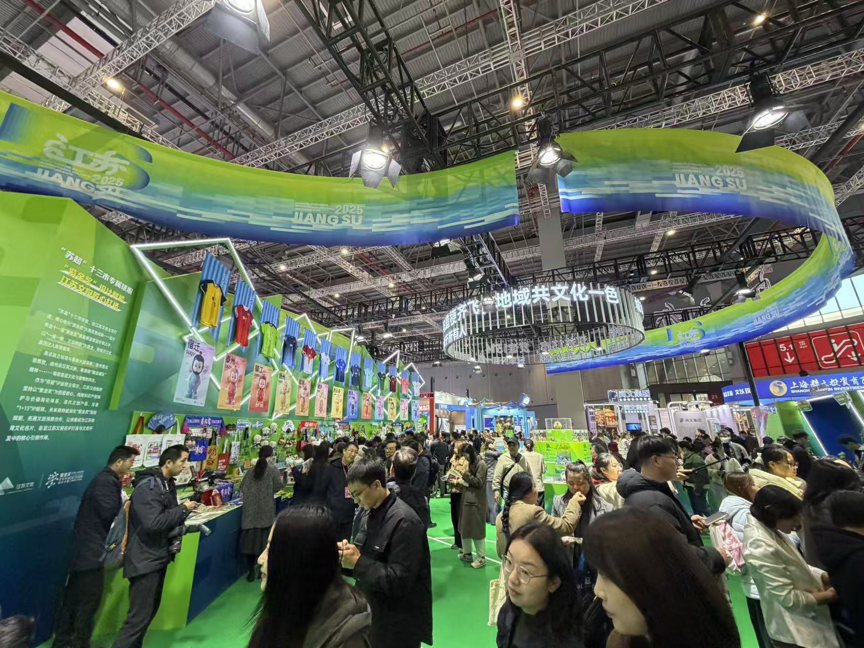 江苏展区聚焦现象级IP“苏超”带来系列文创产品,吸引观众打卡消费。劳动报记者贡俊祺 摄影