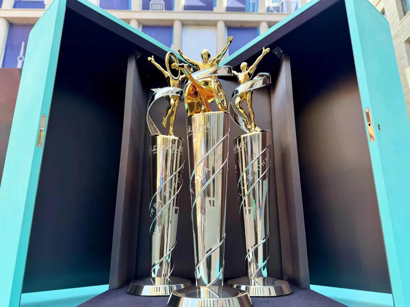 2025上海马拉松赛事奖杯。劳动报记者贡俊祺 摄影