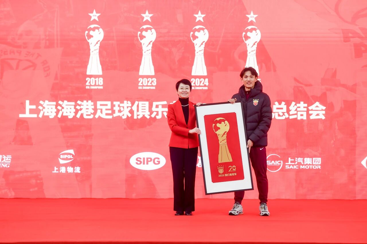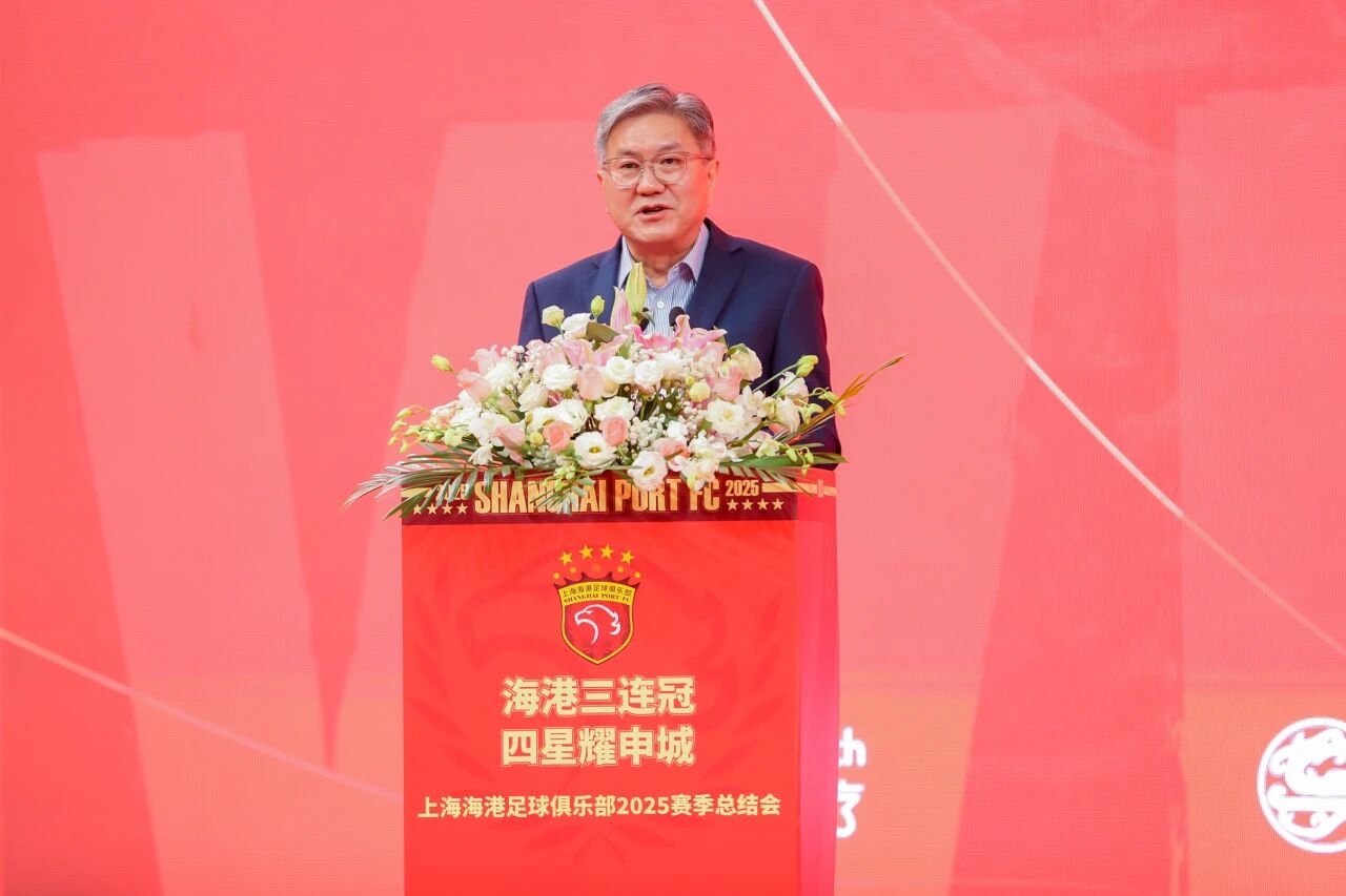 上海市体育局党组书记、局长徐彬在总结会上,代表市体育局向海港俱乐部夺得中超三连冠表示热烈祝贺。他高度赞扬了海港队在本赛季展现出的坚韧毅力和永不言弃的拼搏精神,并在发言中表示,“作为上海职业足球的标杆力量,希望海港俱乐部以三连冠为新起点,夯实青训根基,持续强化竞技实力,为上海足球乃至中国足球培育更多优秀人才。祝愿海港俱乐部在未来的征程中,书写更多传奇,续写更多荣光,为上海体育事业腾飞、为中国足球振兴再立新功!”