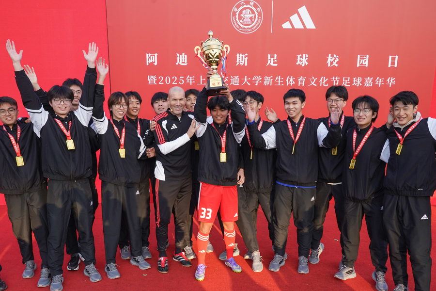 11月30日,上海交通大学胡法光体育场迎来了一堂意义非凡的足球“大师课”。全球知名运动品牌阿迪达斯携手全球代言人、世界足球传奇齐内丁·齐达内,现身阿迪达斯足球校园日暨2025年上海交通大学新生体育文化节足球嘉年华。