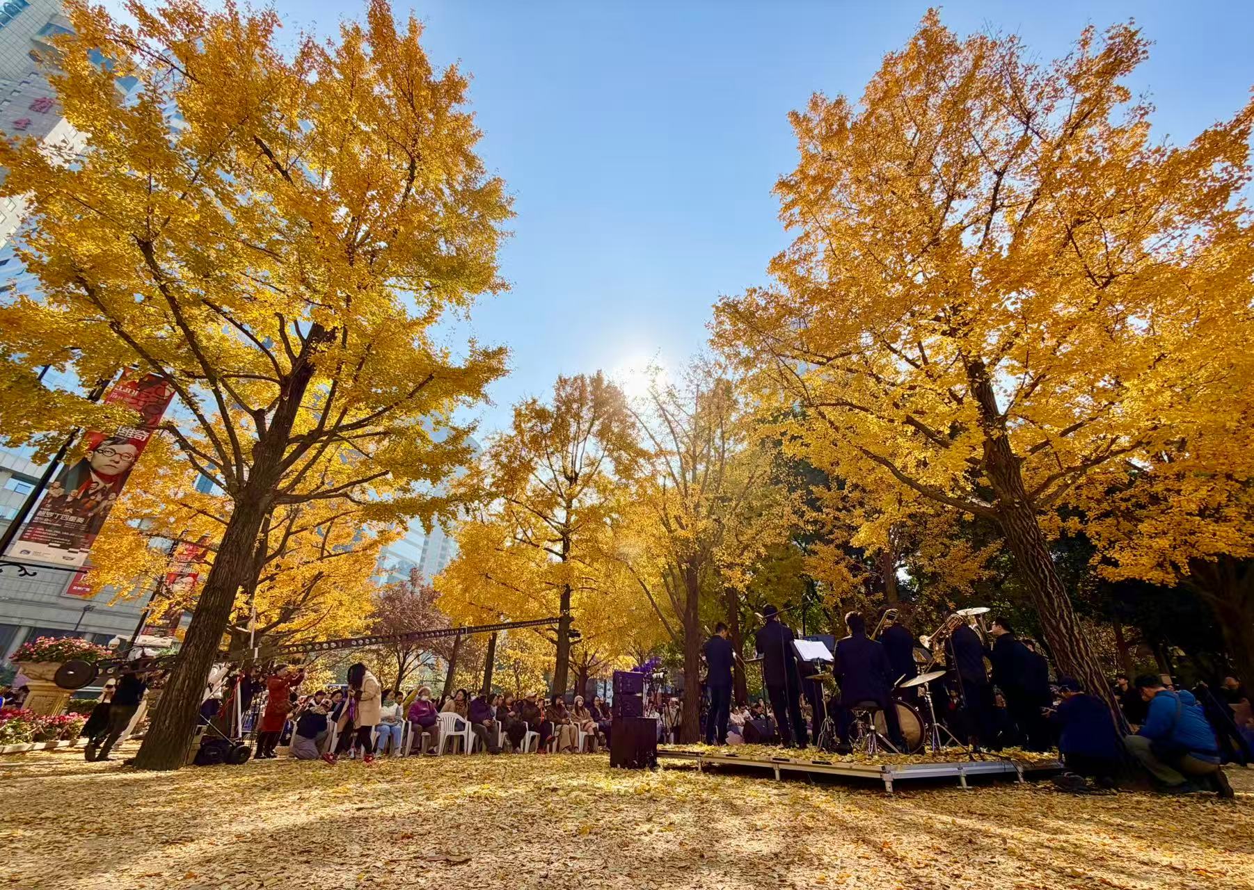 12月6日,陪伴申城市民走过12年的“季节限定”银杏音乐会再次如约而至,以“杏会金响”为主题,集结十一支铜管和打击乐,用磅礴声浪重塑了城市户外艺术新体验。