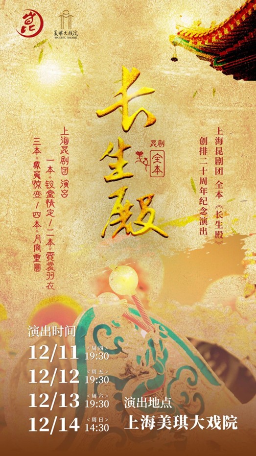 12月11日至14日,上海昆剧团全本《长生殿》,将登台美琪大戏院沉浸式演绎长达十小时的传奇故事。以水磨雅韵重述三百年帝妃绝恋,也用匠心传承回应沪上观众的二十载期盼。