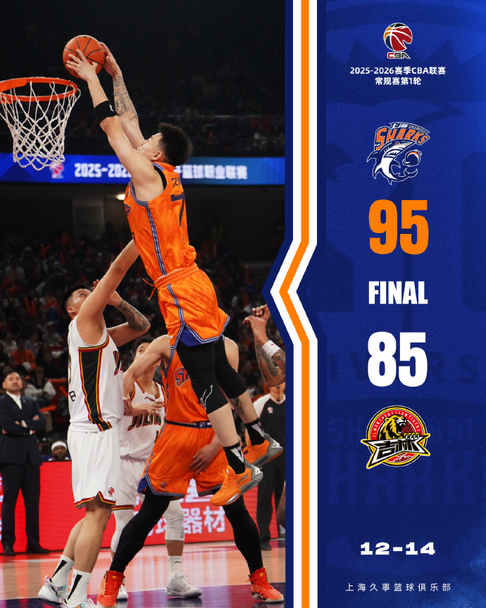 现场坐得满满当当,12月14日晚的新赛季首战,上海男篮入场观众人数超万人,创造了上海体育馆男篮观赛新纪录。在这样的火爆气氛中,上海男篮也从慢热中逐渐找回感觉,凭借着第三节开始的发力,以95比85,逆转击败了长白山恩都里,拿下赛季首胜。