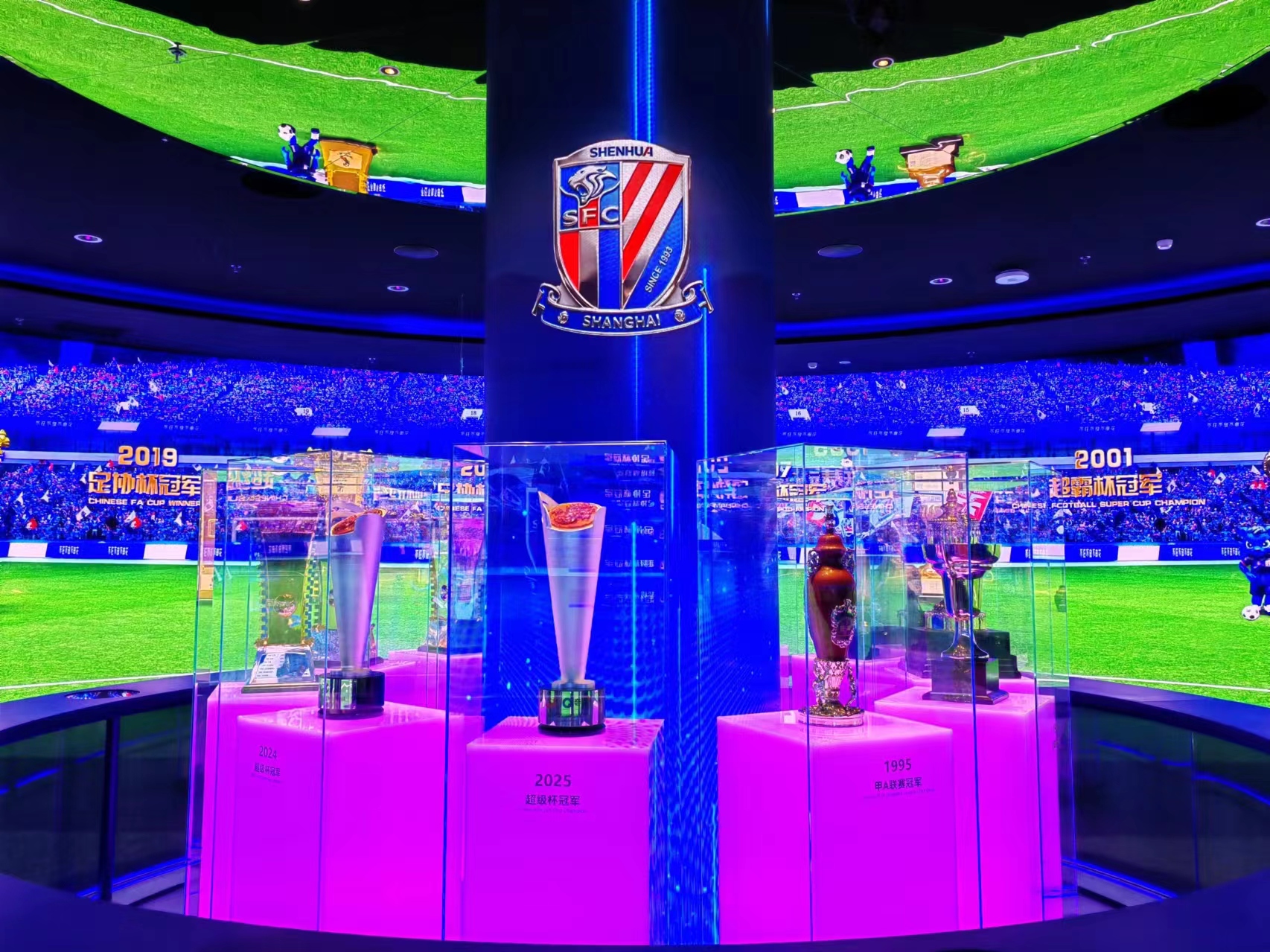 记者提前探营发现,这片总面积超2000平方米的“申花中心”不仅是上海申花俱乐部队史与文化的展示平台,亦是一次关于体育、文旅、商业、展览融合的创新探索。项目秉持“可参与、可互动、可带走记忆”的理念,致力于打破传统体育场馆的时空限制,打造了一个365天持续运营的城市体育文化新地标。