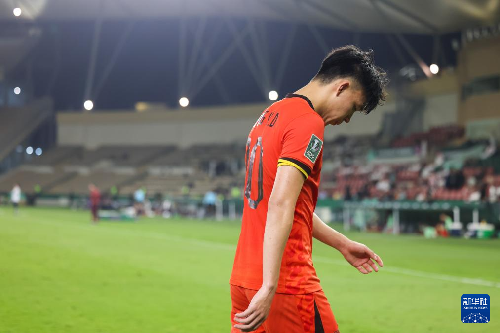 中国队头号球星王钰栋难掩失落。新华社图