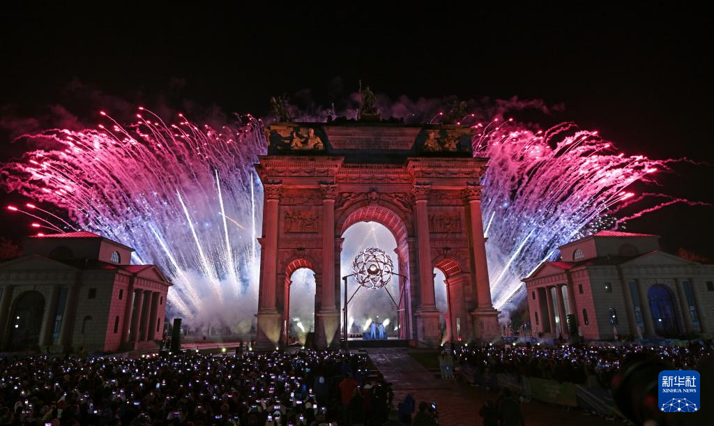 三支巨型颜料管绘出精彩米兰。新华社图