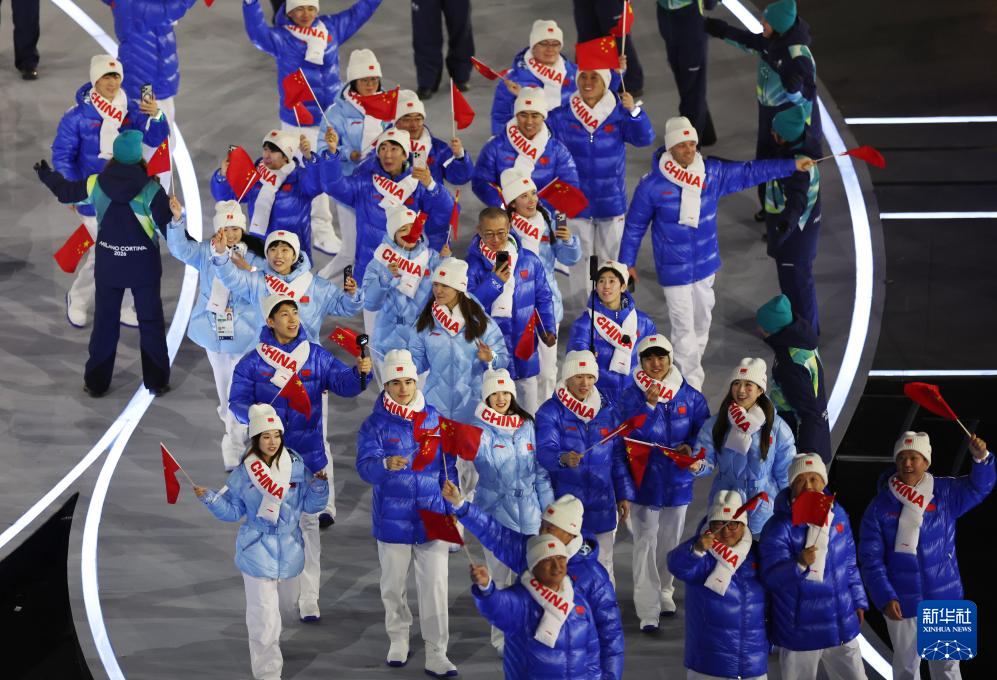 中国体育代表团共286人,其中运动员126人,将参加7个大项、15个分项、91个小项的角逐,创下中国冬奥会境外参赛项目最多、运动员规模最大的新纪录。开幕式上,速度滑冰运动员宁忠岩和短道速滑运动员张楚桐共同担任中国代表团旗手,引领队伍入场。