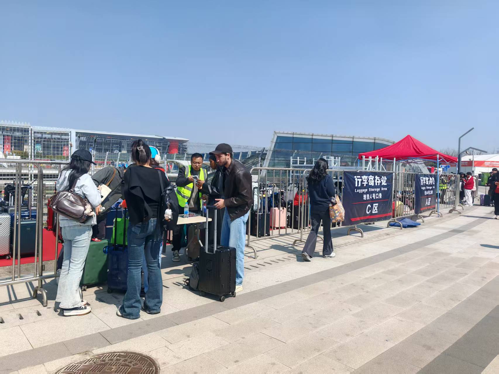 地铁出口的行李寄存处堆满了行李。劳动报记者王卫朋 摄影