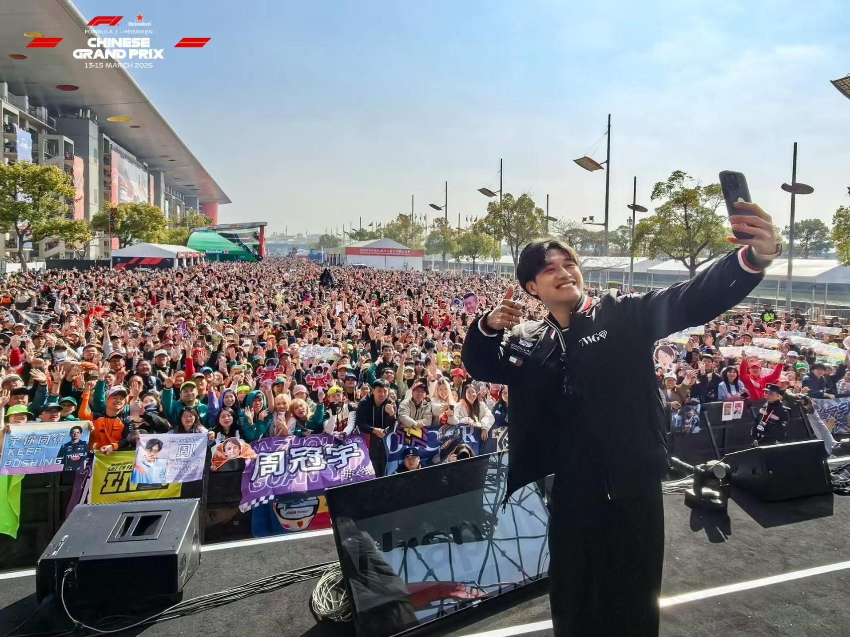 中国车手周冠宇与车迷互动。赛事官方图