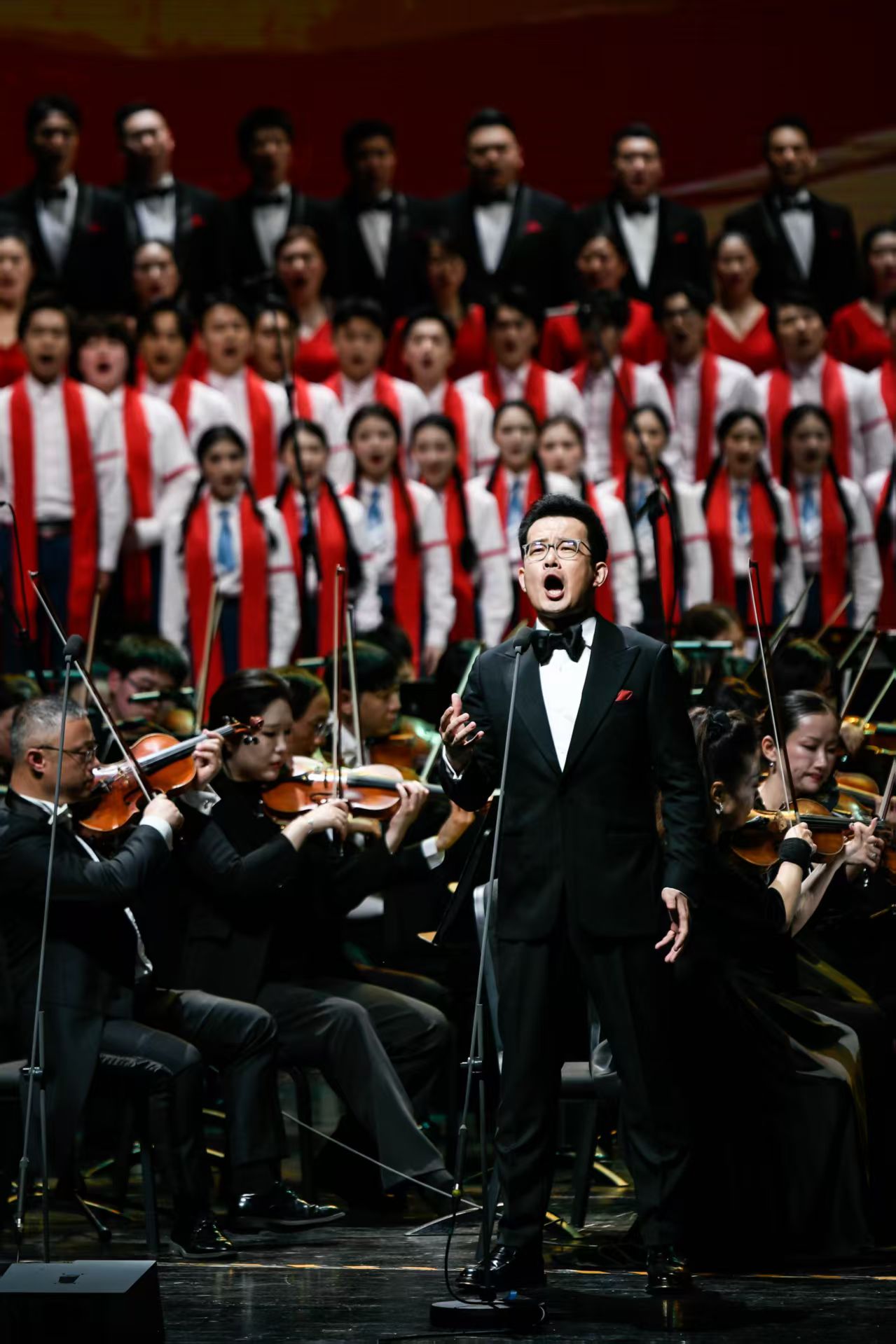 此外,民族歌剧《沂蒙山》选段《爱永在》由石倚洁演唱,展现军民深情;廖昌永演唱《灯火里的中国》,呈现新时代发展图景。音乐会最终以《我和我的祖国》收束,全场合唱将气氛推向高潮。