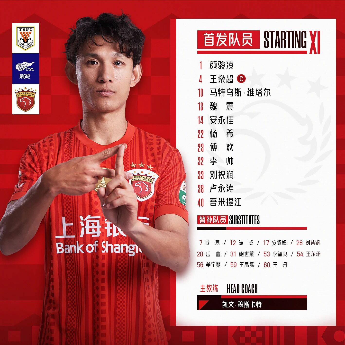 首发名单。海港俱乐部图