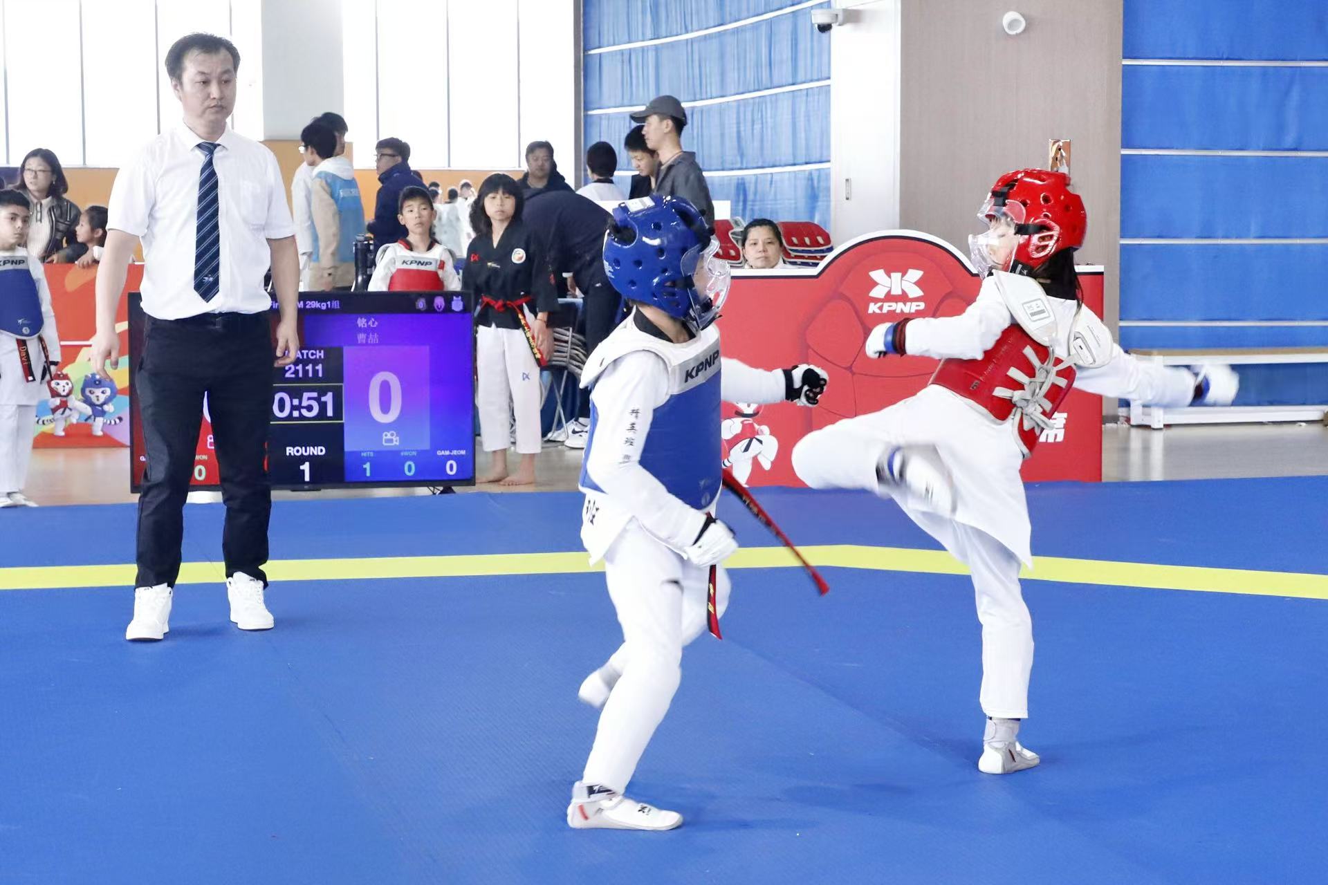 赛场上,运动员们精神饱满、技术娴熟。竞技项目中,选手们攻防转换迅速,战术执行果断;品势比赛中,动作标准、气势沉稳;与此同时,虚拟跆拳道积分赛则通过科技化、国际化的赛事装备,展现了科技与体育融合的新趋势,让传统的跆拳道运动在数字化浪潮中焕发出新的活力。