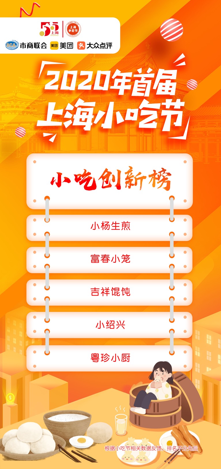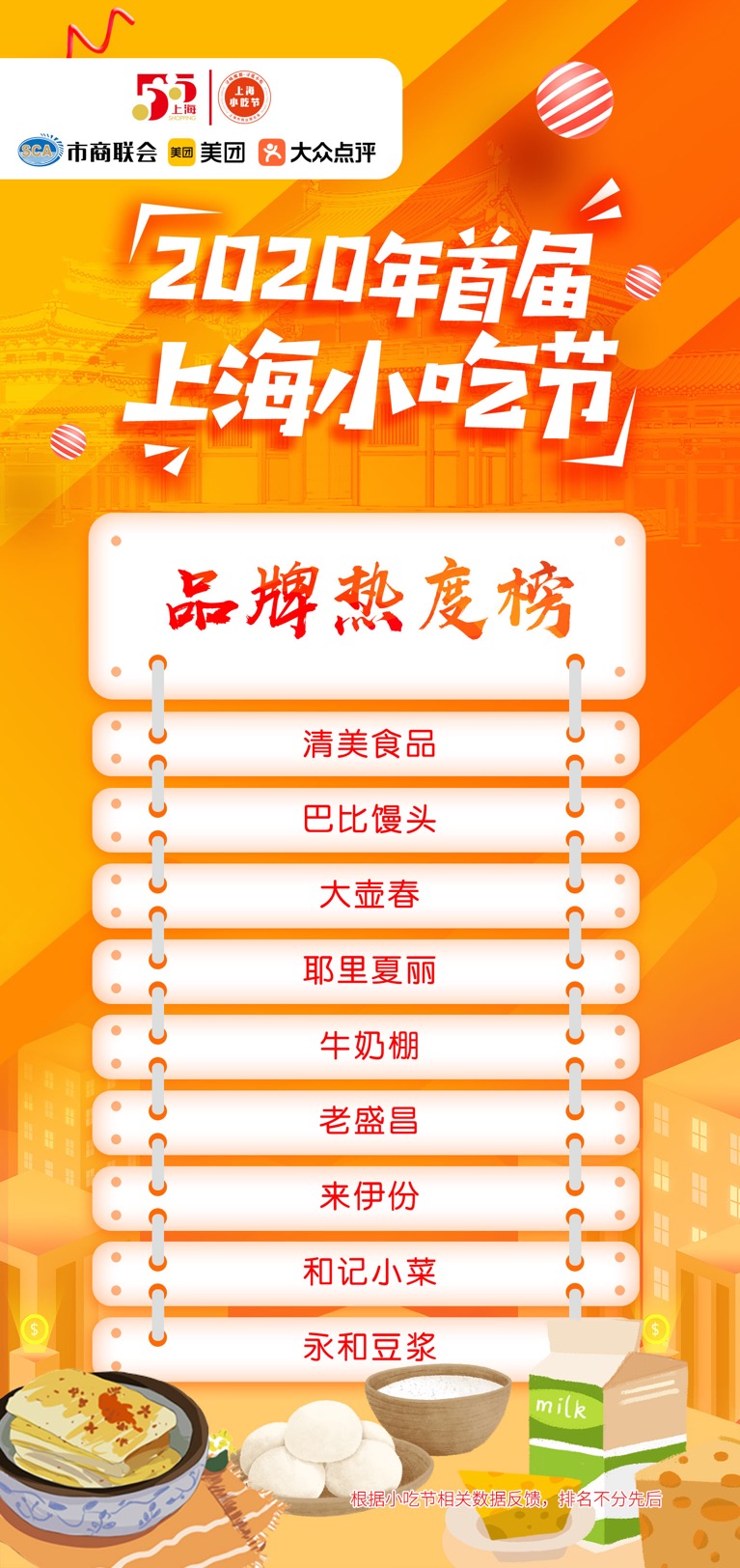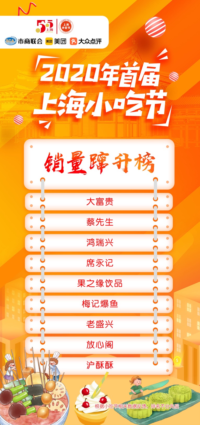 市商业联合会常务副会长吴星宝透露,小吃节期间,市商联会与美团点评通过大数据对小吃节参与企业进行了跟踪监测,根据相关数据,主办方还发布了人气地标榜、品牌热度榜、单品热销榜、销量蹿升榜、小吃创新榜、早餐便民榜等榜单。