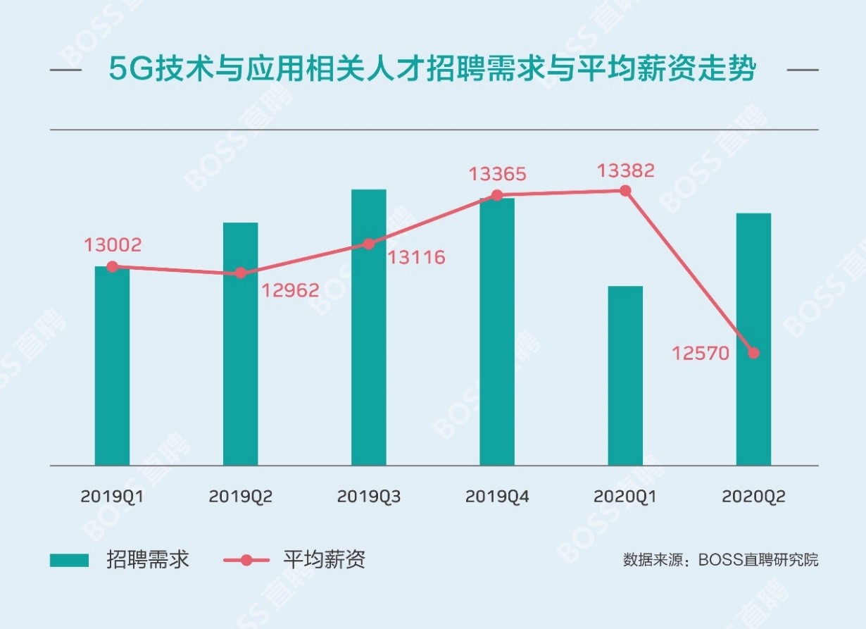 过去18个月,国内5G人才平均薪资约为13066元。9月4日,BOSS直聘发布《2020年5G人才趋势观察》,报告显示,今年二季度,随着国内疫情防控趋于稳定,5G相关岗位的人才需求恢复迅速,同比增长3.4%,环比增长39.8%,整体呈现向好态势。