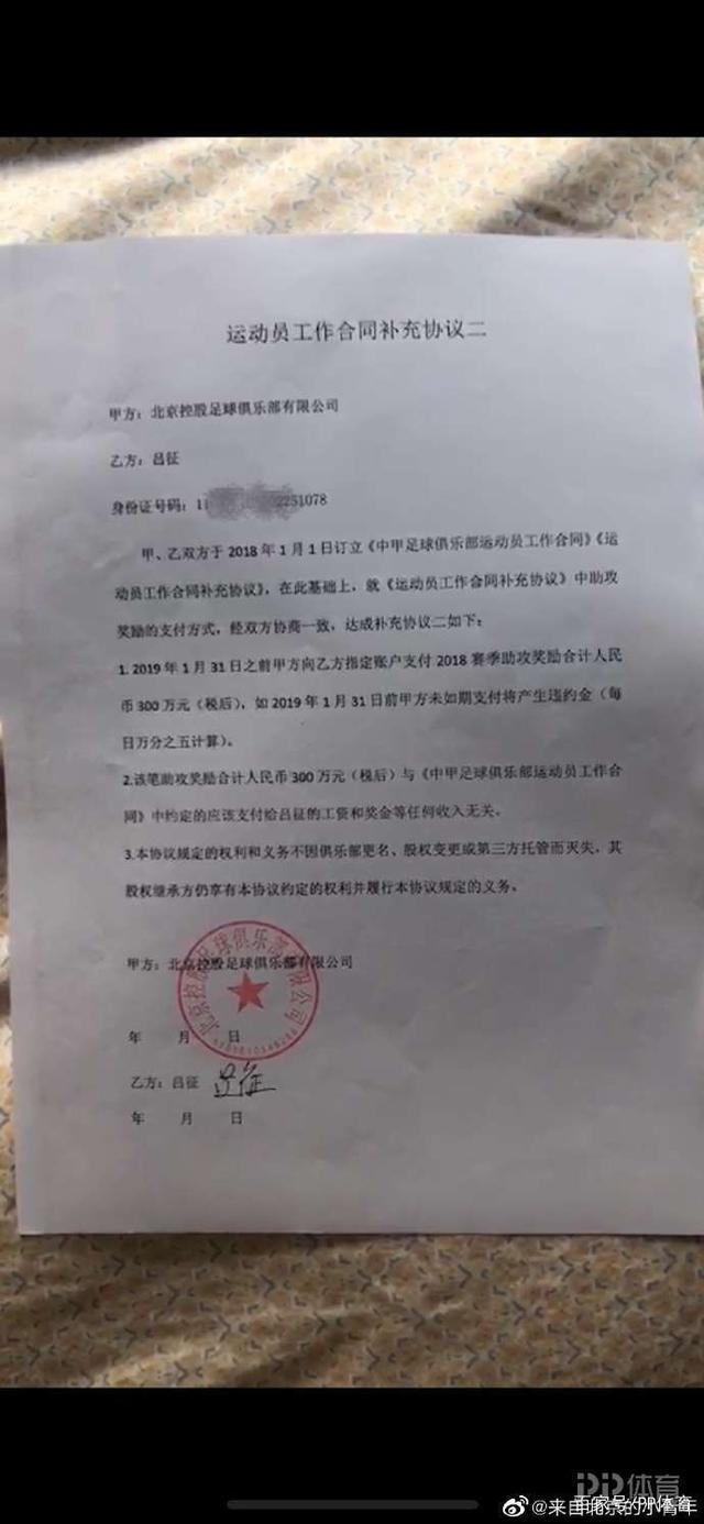 仲裁中,另一个争议是,有一笔《运动员工资合同补充协议二》规定的80万元未支付,这也是吕征此次发微博维权的主要内容。