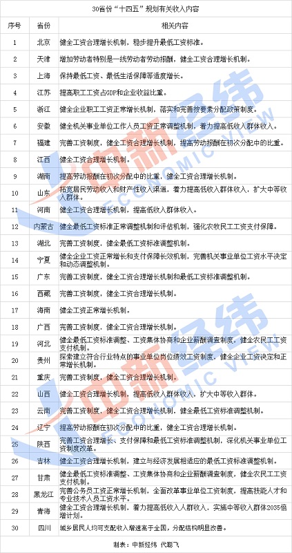 中新经纬客户端梳理发现,30省份在“十四五”规划中均提及收入。