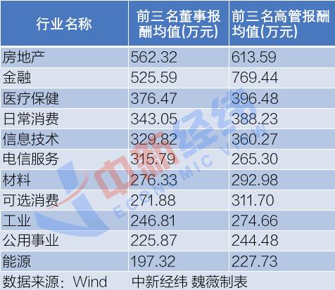 Wind数据显示,在11个Wind一级行业中,房地产、金融和医疗保健的前三位董事、高管薪酬均值遥遥领先,进入这三个行业获得高薪的最有可能实现百万年薪。需要注意的是,由于A股中互联网公司较少,故并不能将所有行业全部覆盖。