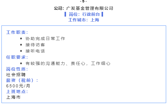 广发基金管理有限公司正在招聘行政前台,要求有较强的沟通能力、责任心,工作细心。