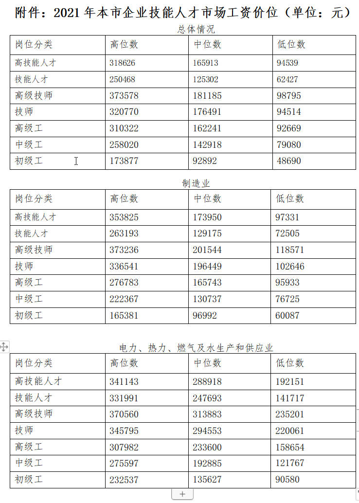 12月30日,上海市人社局公布了本市企业技能人才的市场工资价位。数据显示,2021年,技能人才平均工资为14.83万元,较上年增加1.28万元,同比增长9.4%,增幅为近三年最高。