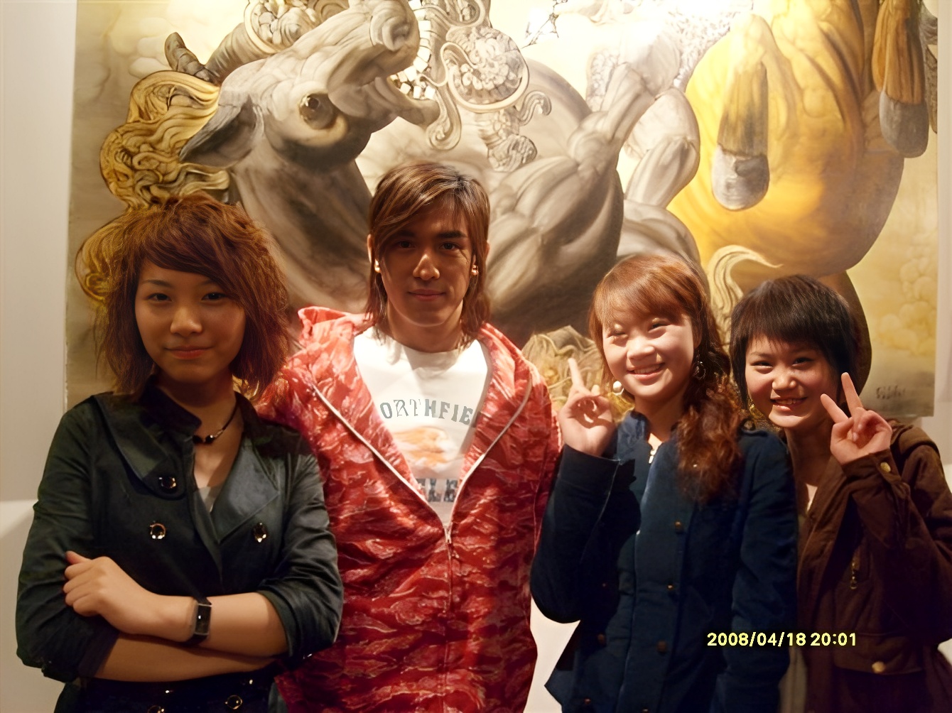 叶慧(右二)早年做演员时与明星的合影。受访者供图