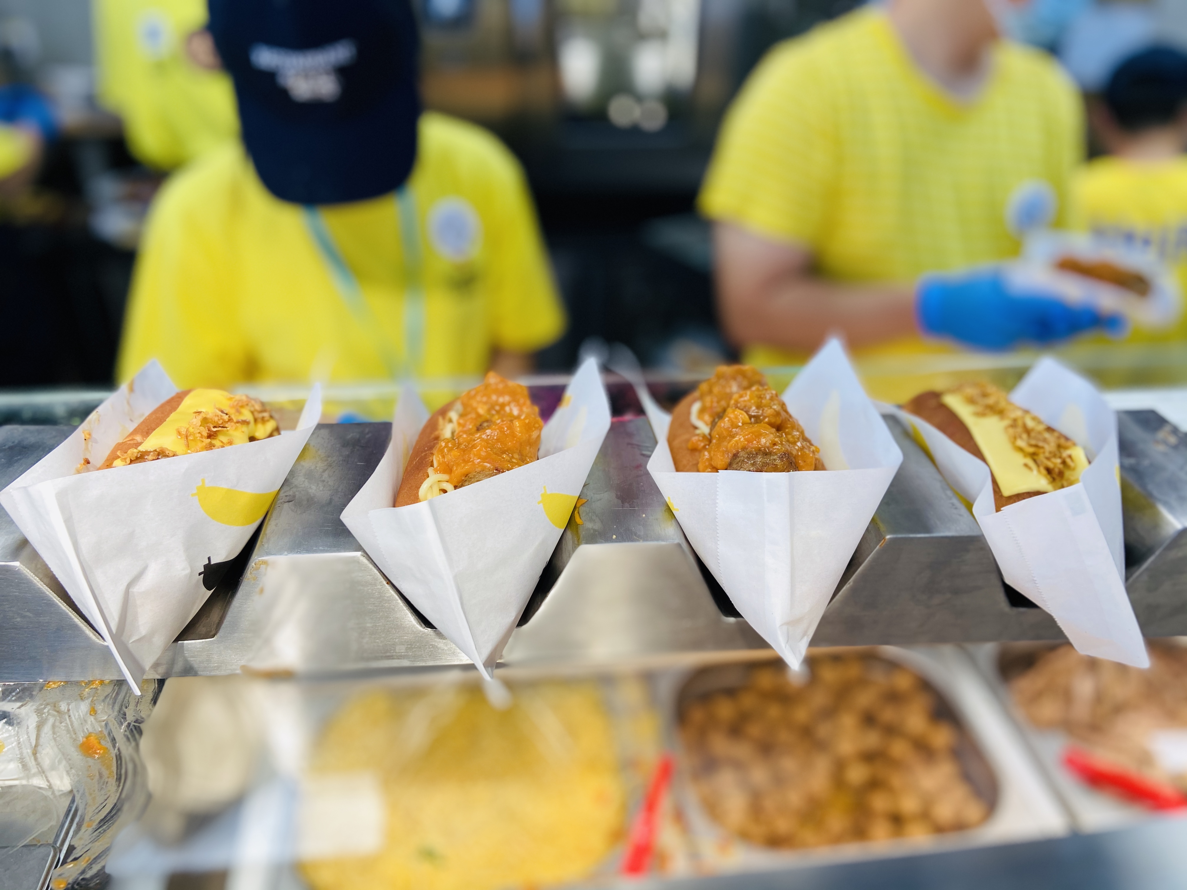 心心念念的肉丸热狗到手了,汉堡里面夹着意面和肉丸,满满的食材。肉丸很实诚,保留了宜家原有的水平,一个汉堡三个肉圆,价格9.9元,还是很实惠的。所以很多阿姨伯伯即使排队也愿意等。