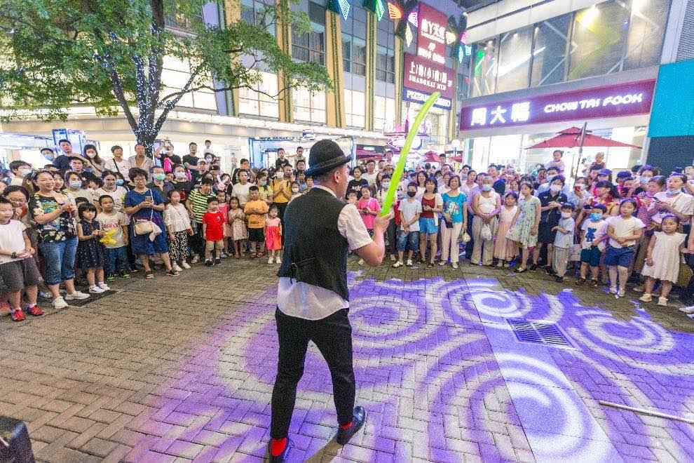 除了满足食客们的深夜味蕾,夜市每周末更有双人乐队、默剧表演、露天瑜伽等适合各个年龄层的街头演出,让消费者体验不止于新奇的互动表演,更能感受轻松愉悦的购物氛围,这是大宁国际从疫情以来就坚持到现在的事,现在俨然成了新潮的象征。为了让有车一族也能玩得尽兴,凡在夜市内任意消费积分成功即可得1小时停车券。